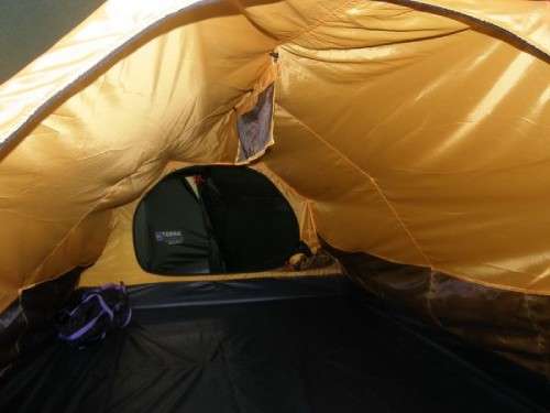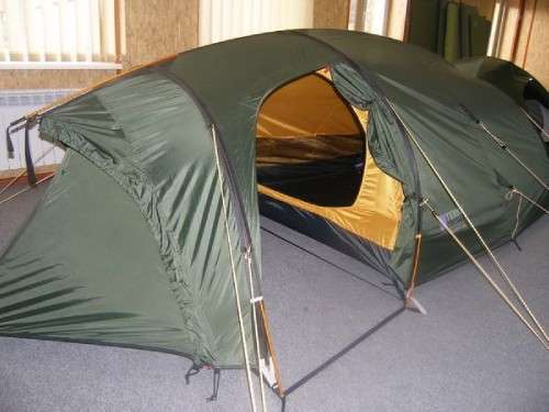 Просторная и комфортная модель 3-ёх местной палатки, используемой в  течение всего года. Устойчивая конструкция палатки из 4-ёх внешних дуг,  позволяет устанавливать тент без спального помещения, а также  обеспечивает простую и удобную сборку и разборку палатки. Большой и  удобный передний тамбур для вещей и снаряжения. Два входа дают  возможность прямого доступа в спальню и обеспечивают идеальную  вентиляцию.