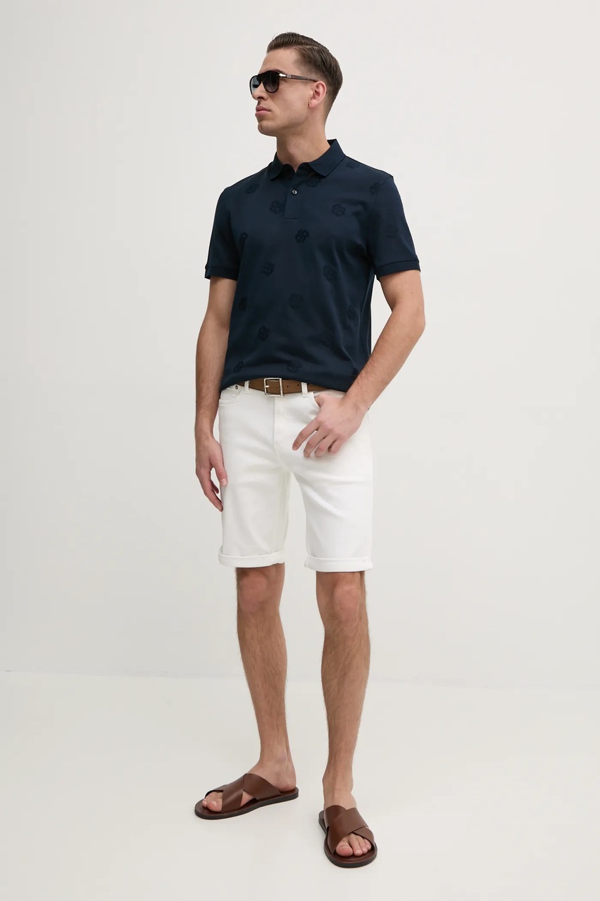 Бавовняне поло BOSS чоловіче колір синій однотонне 50532765 Boss