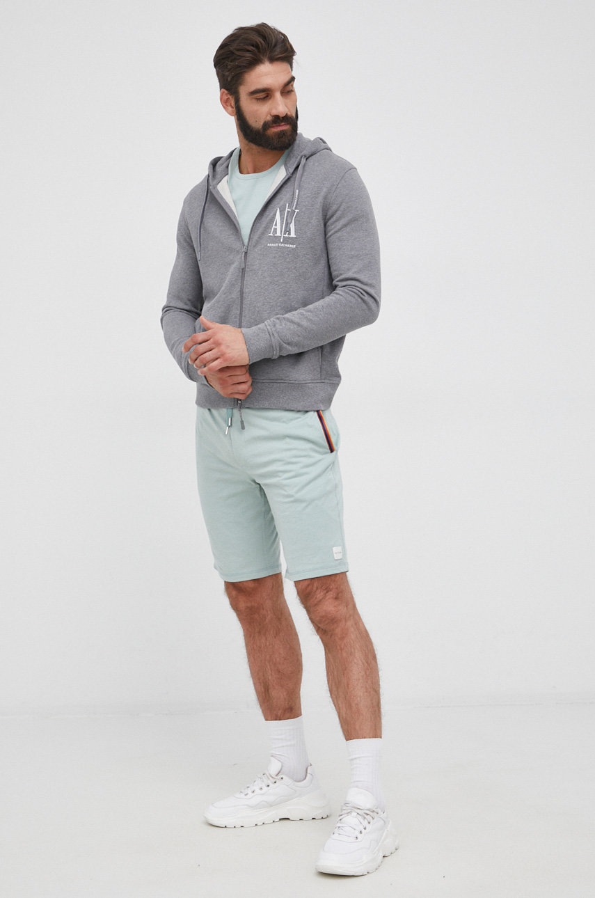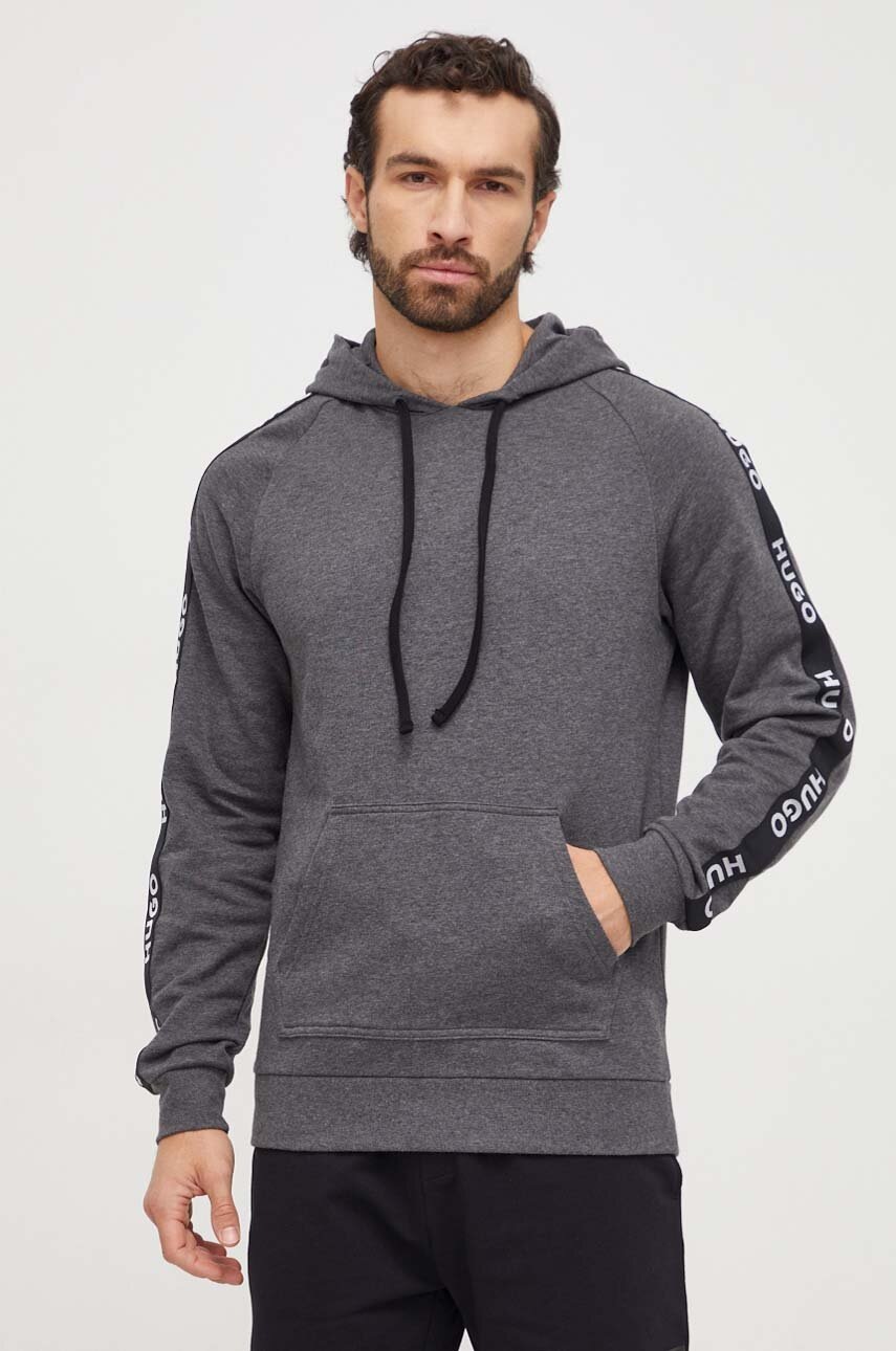 Бавовняна кофта лаунж HUGO колір сірий з капюшоном з аплікацією Hugo