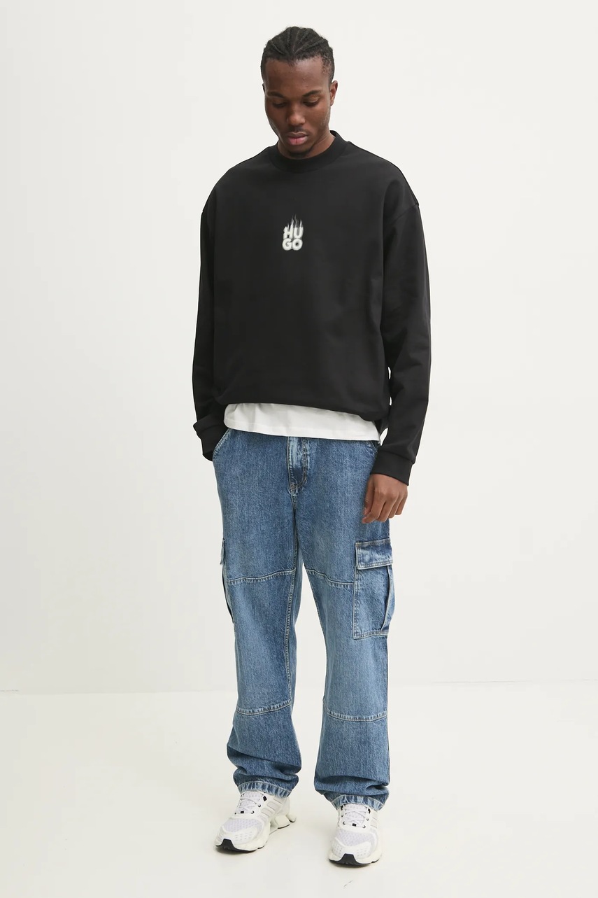 Бавовняна кофта HUGO чоловіча колір чорний з принтом 50530427 Hugo