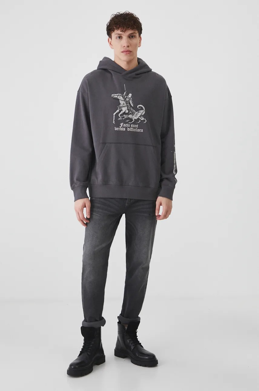 Кофта Medicine чоловіча колір сірий з капюшоном з принтом Medicine