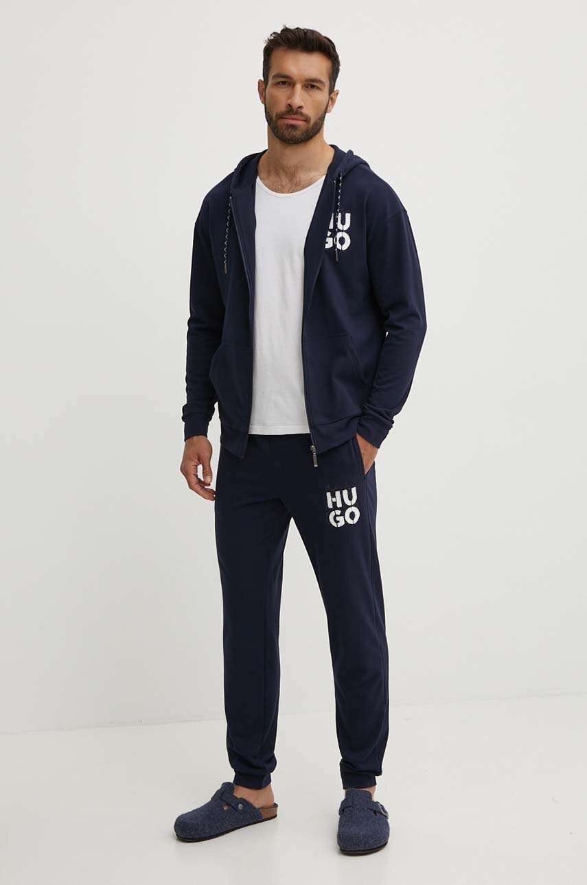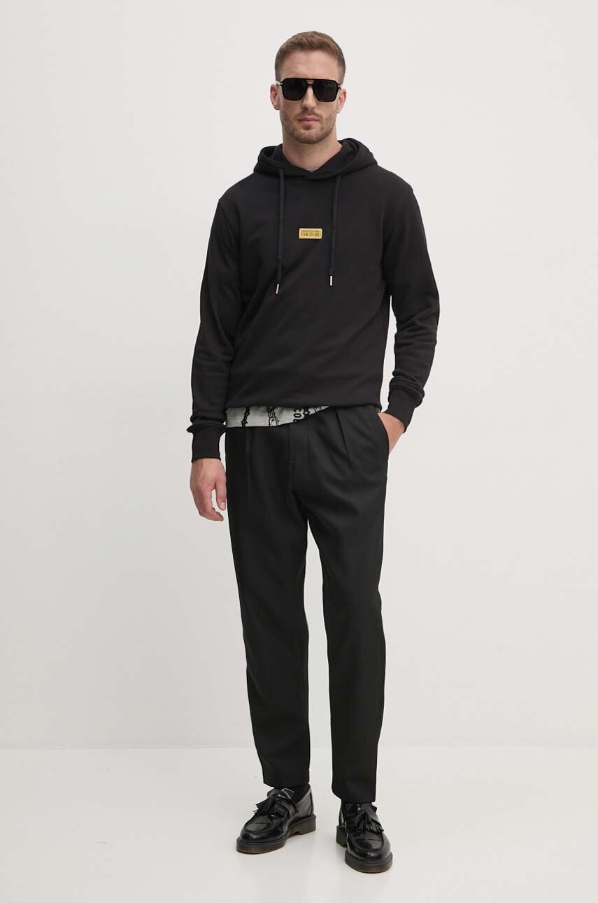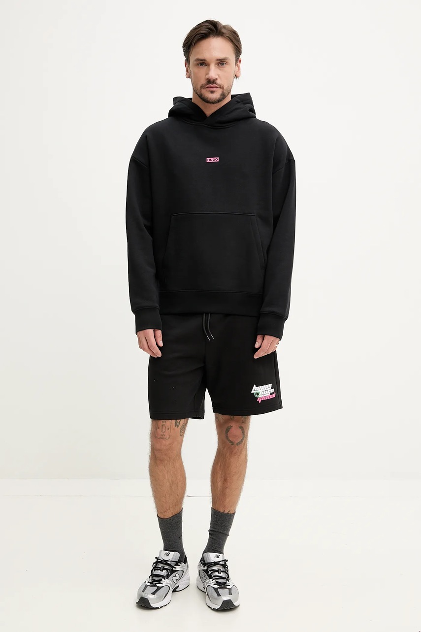 Бавовняна кофта Hugo Blue чоловіча колір чорний з капюшоном з принтом 50510724 Hugo Blue