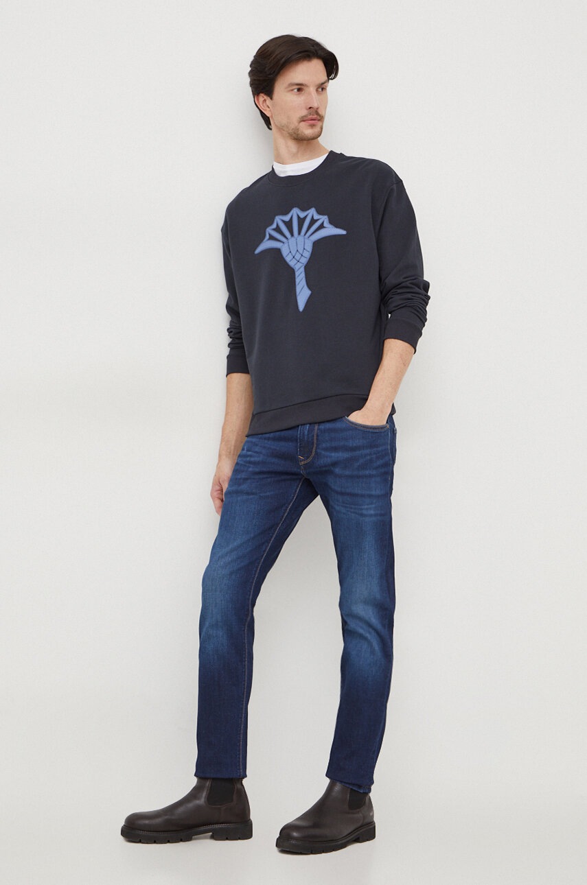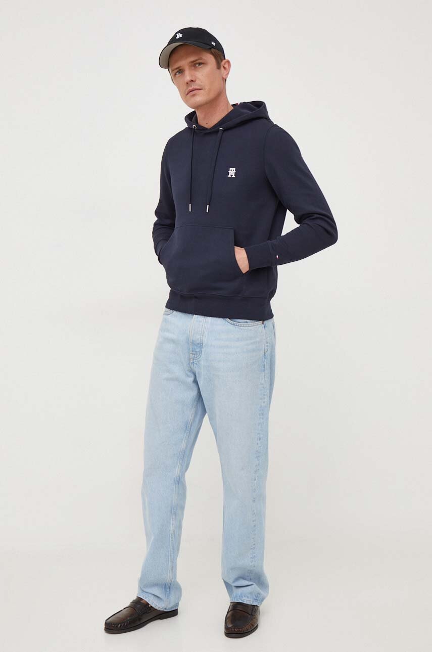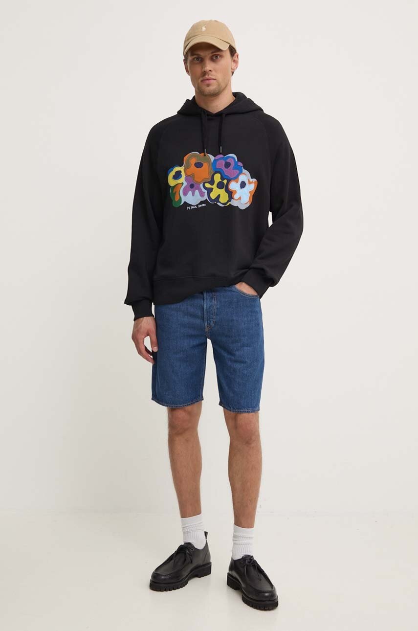 Бавовняна кофта Hugo Blue чоловіча колір чорний з капюшоном з принтом 50510724 Hugo Blue