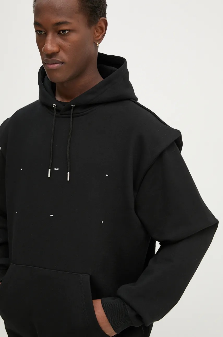 Бавовняна кофта Hugo Blue чоловіча колір чорний з капюшоном з принтом 50532264 Hugo Blue