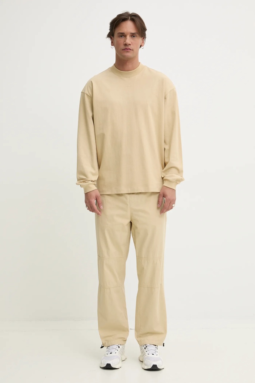 Бавовняні штани HUGO колір бежевий прямі 50530916 Hugo