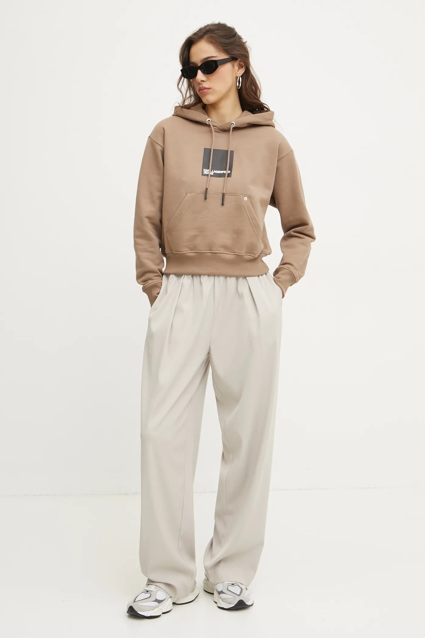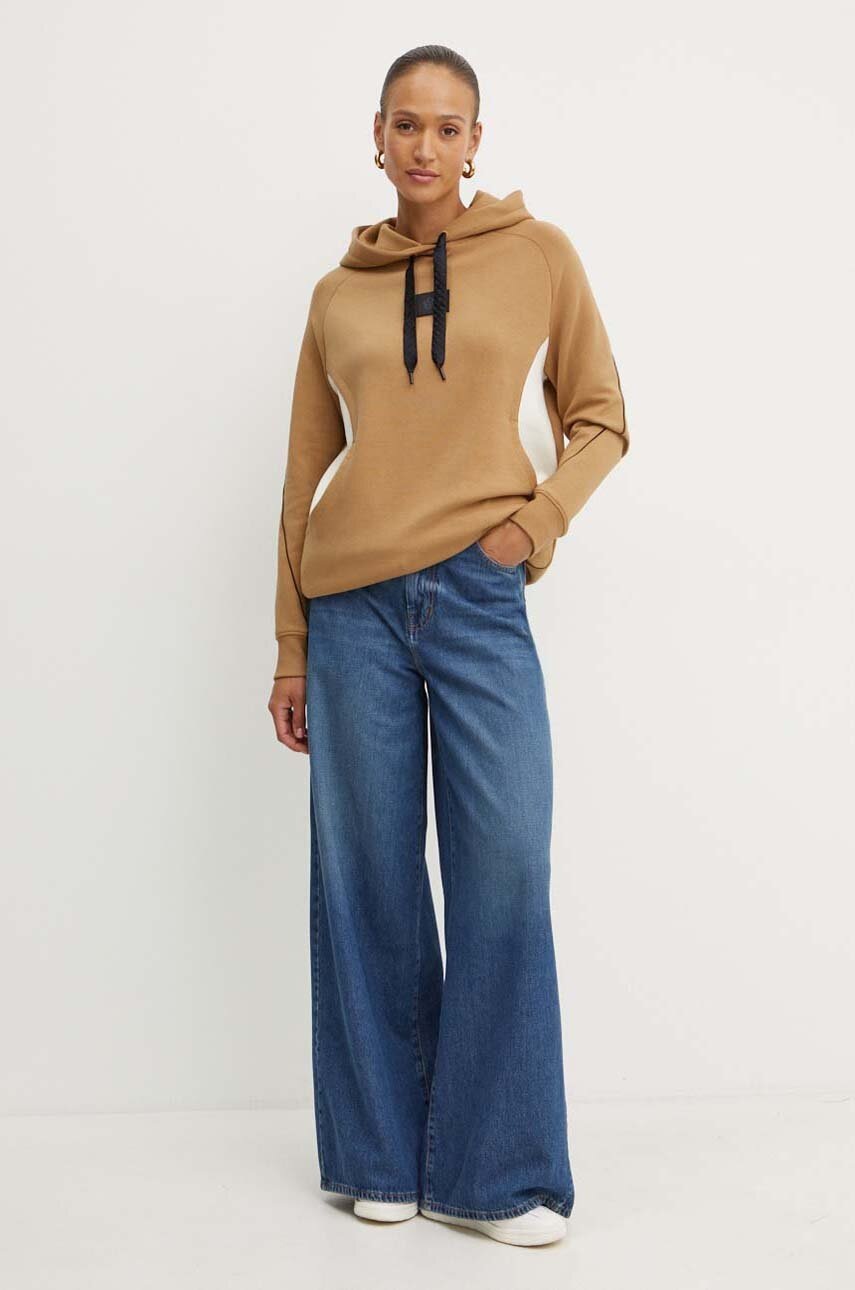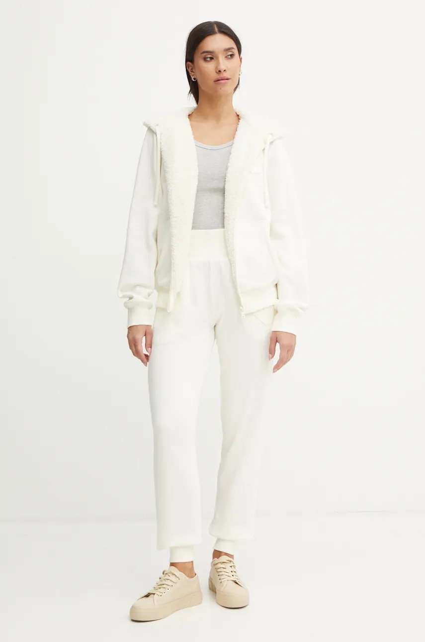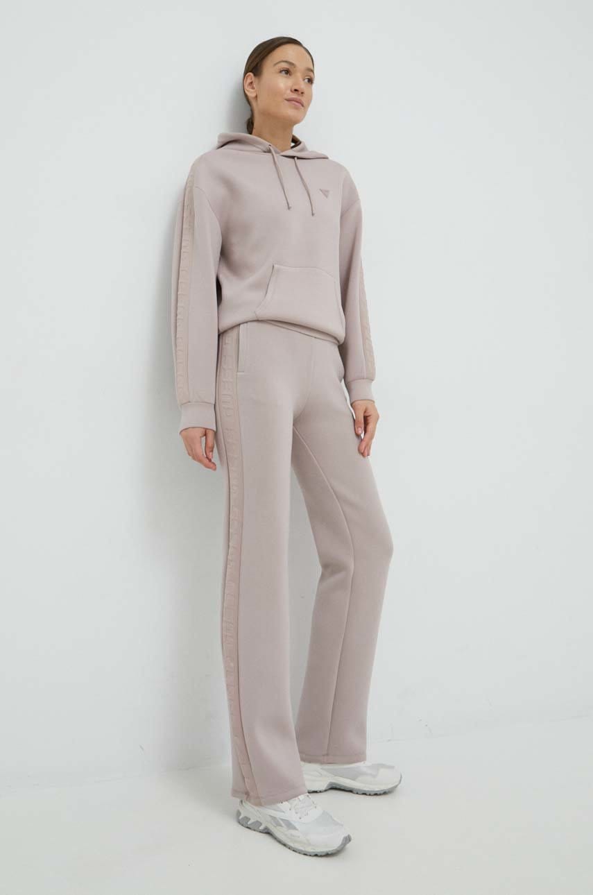 Кофта Guess жіноча колір бежевий з капюшоном з принтом Guess