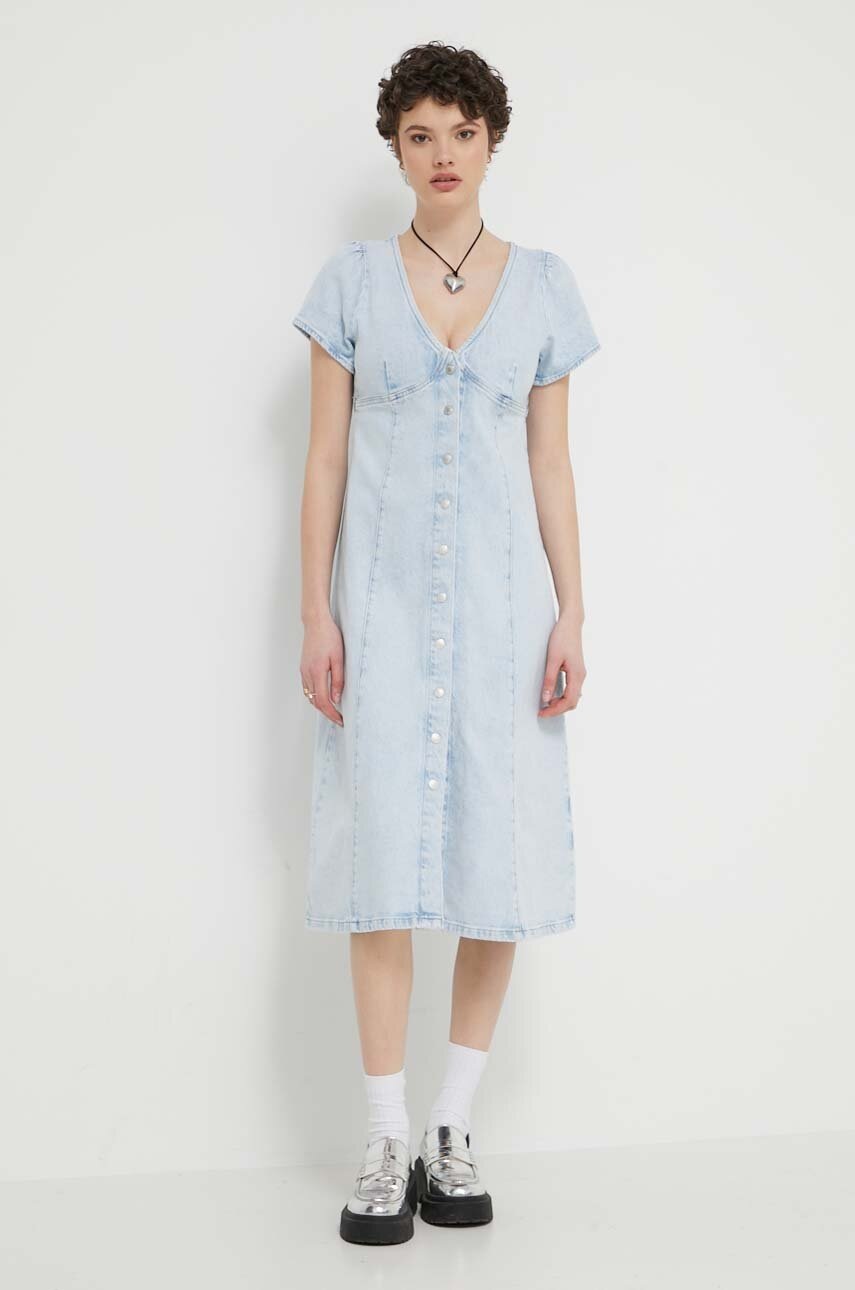 Джинсова спідниця Tommy Jeans midi розкльошена Tommy Jeans