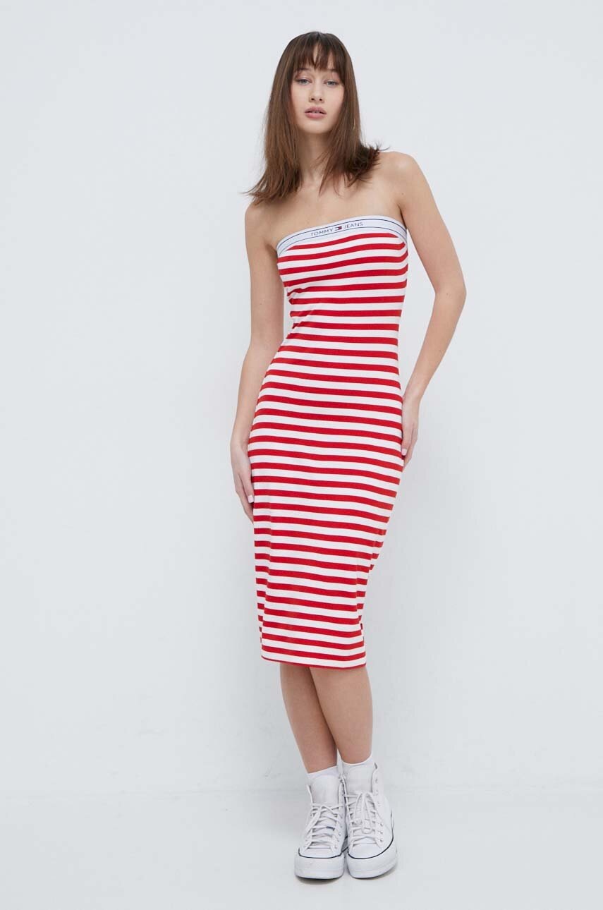 Сукня Tommy Jeans колір червоний mini облягаюча Tommy Jeans