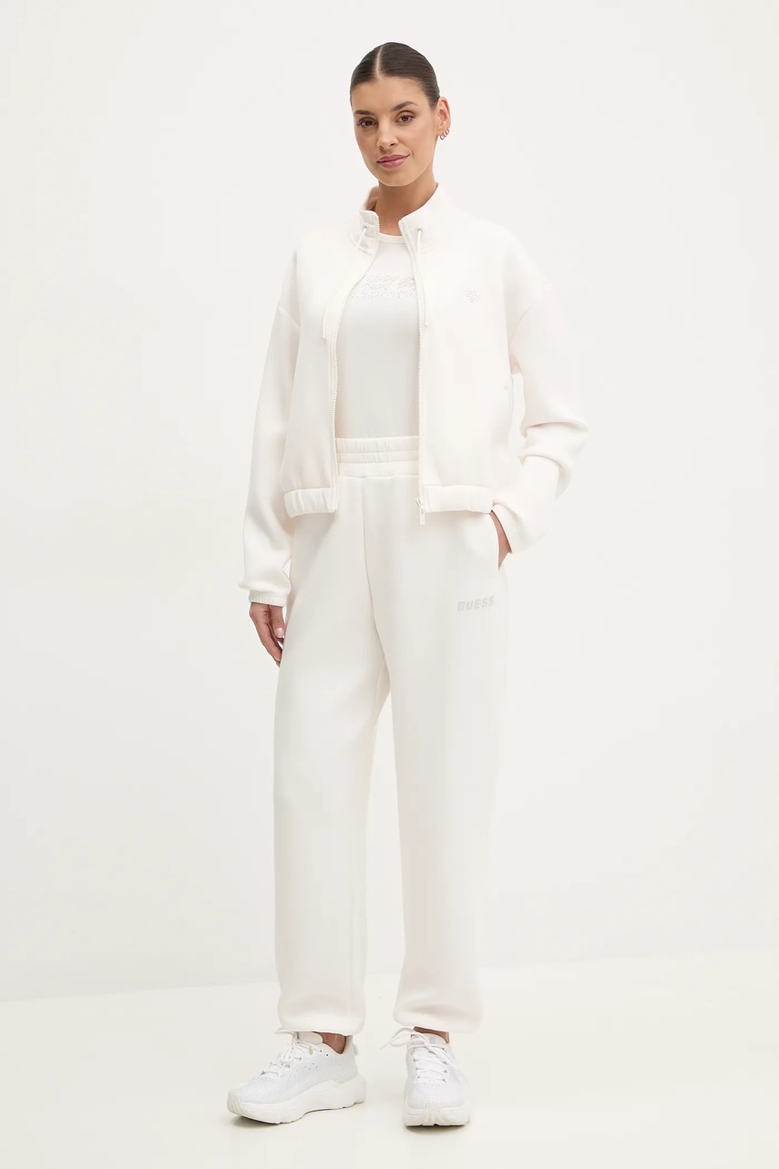 Кофта Guess жіноча колір білий з капюшоном з аплікацією Guess