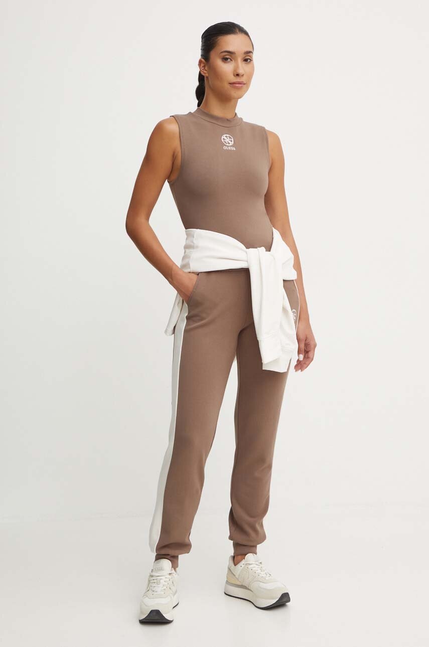Спортивні штани Guess жіночі колір бежевий з аплікацією Guess