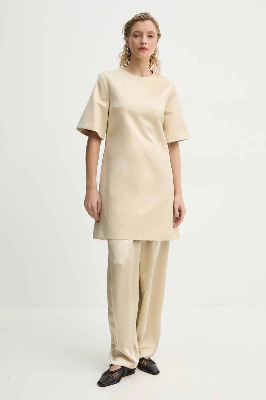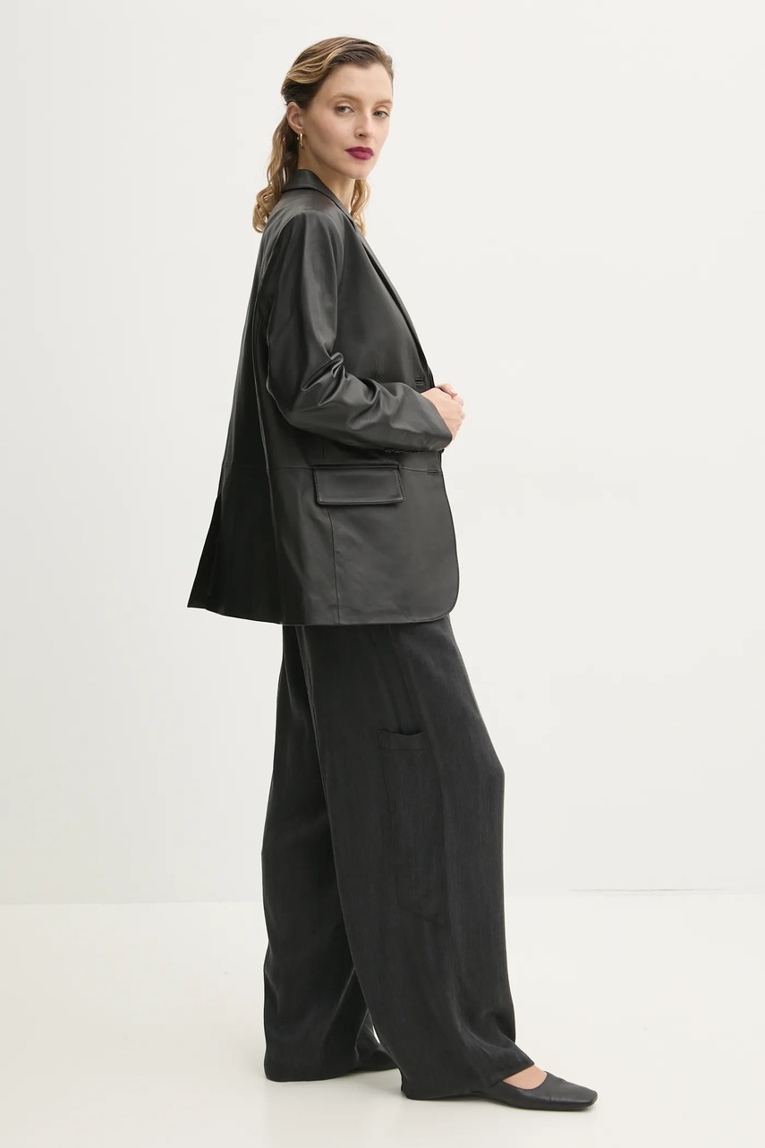 Штани з домішкою льону Gestuz колір бежевий широке висока посадка Gestuz