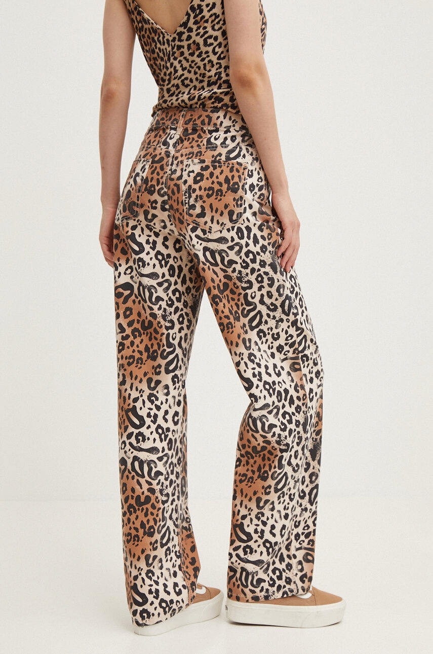 Штани HUGO жіночі колір бежевий широкі висока посадка 50540807 Hugo