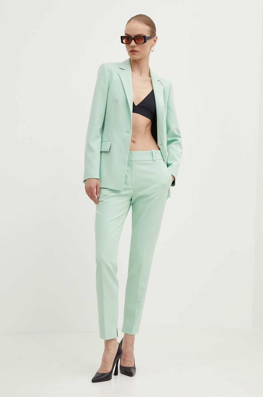 Штани HUGO жіночі колір зелений широкі висока посадка 50530080 Hugo