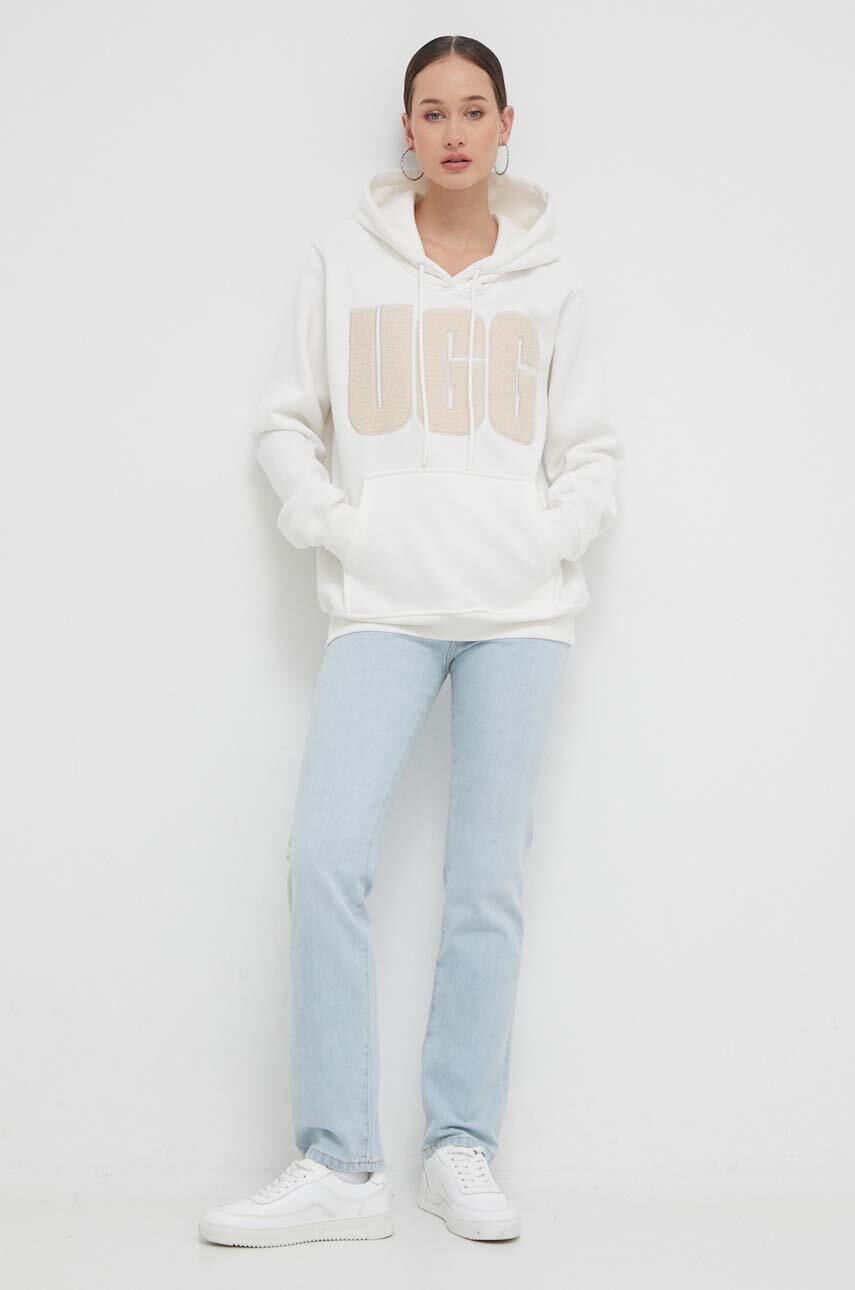 Штани HUGO жіночі колір бежевий широке висока посадка Hugo