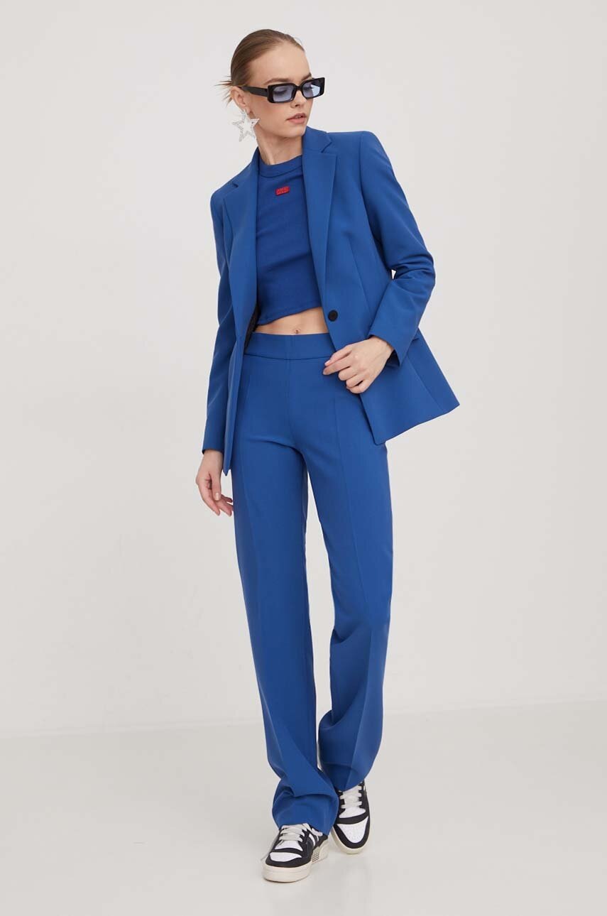 Штани HUGO жіночі колір чорний облягаючі висока посадка 50530455 Hugo