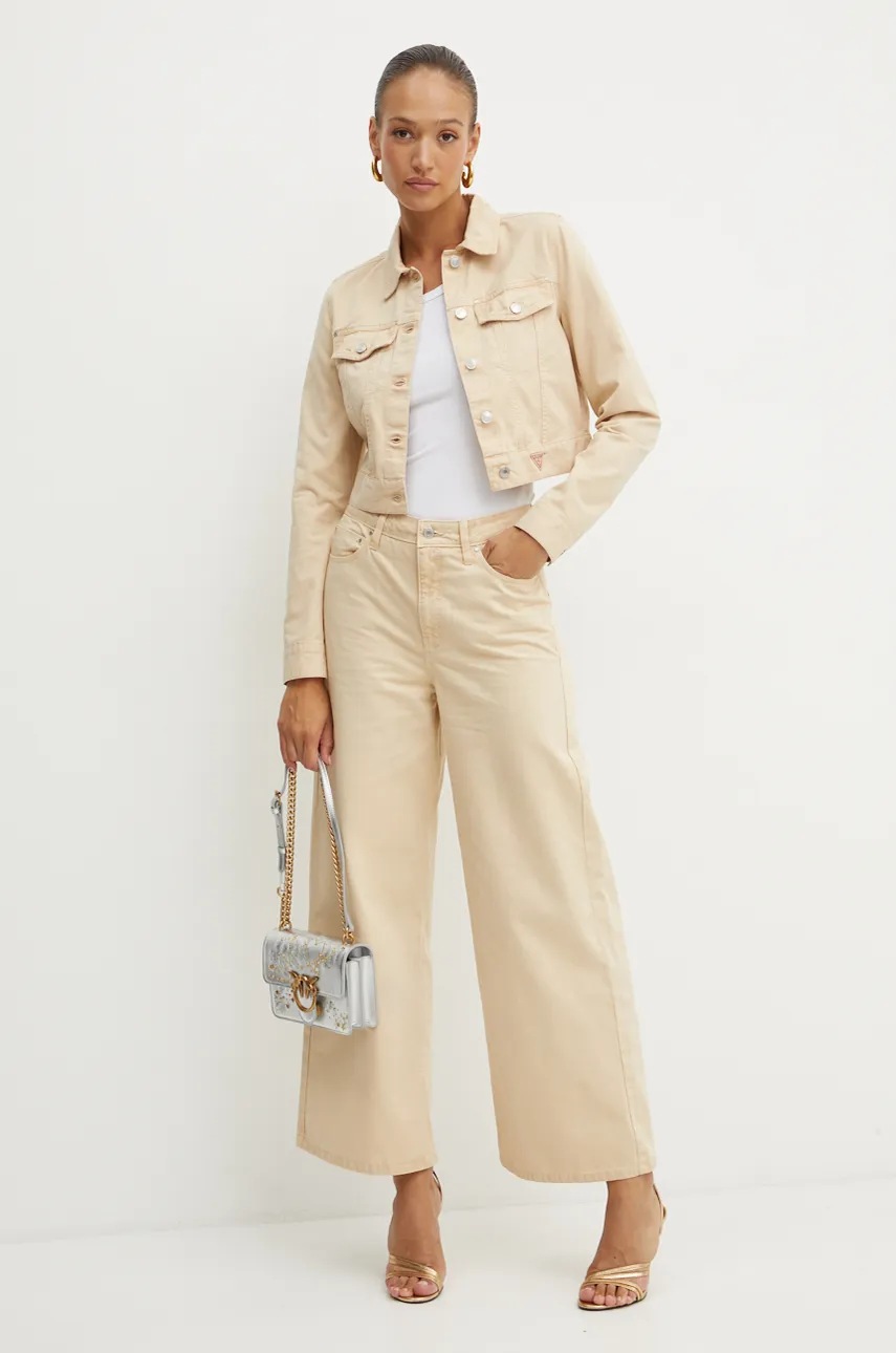 Штани Guess жіночі колір бежевий кльош висока посадка Guess