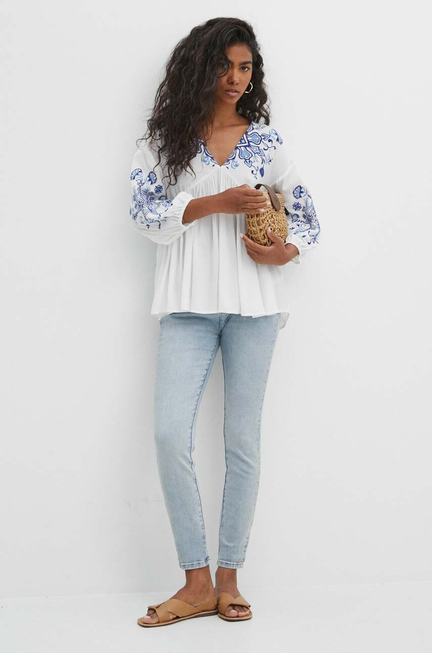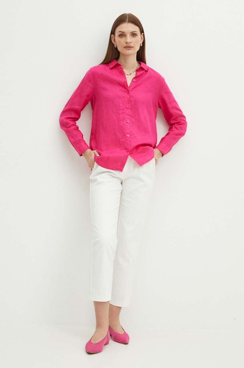 Льняна блузка Medicine жіноча колір білий однотонна Medicine