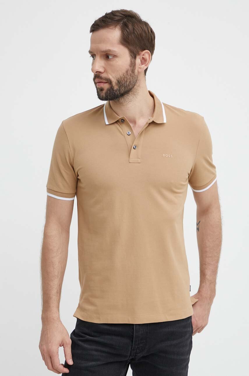 Бавовняне поло BOSS колір бежевий однотонний Boss