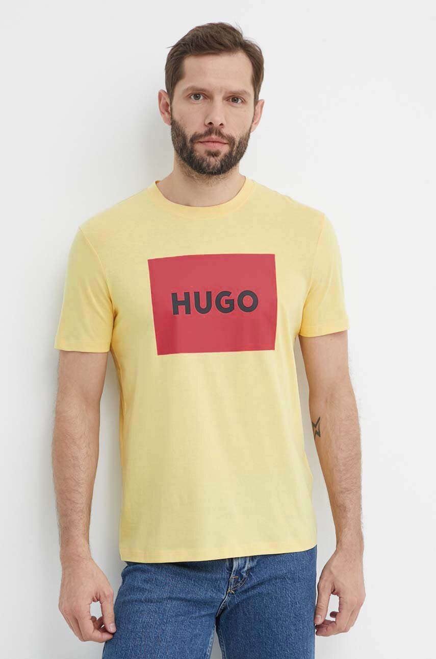 Бавовняна футболка HUGO чоловічий колір жовтий з принтом Hugo