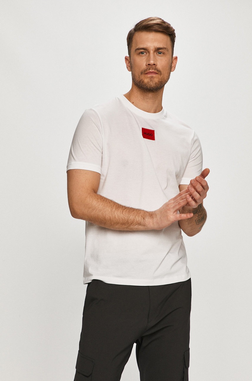 Бавовняна футболка HUGO чоловіча колір білий з аплікацією 50447978 Hugo