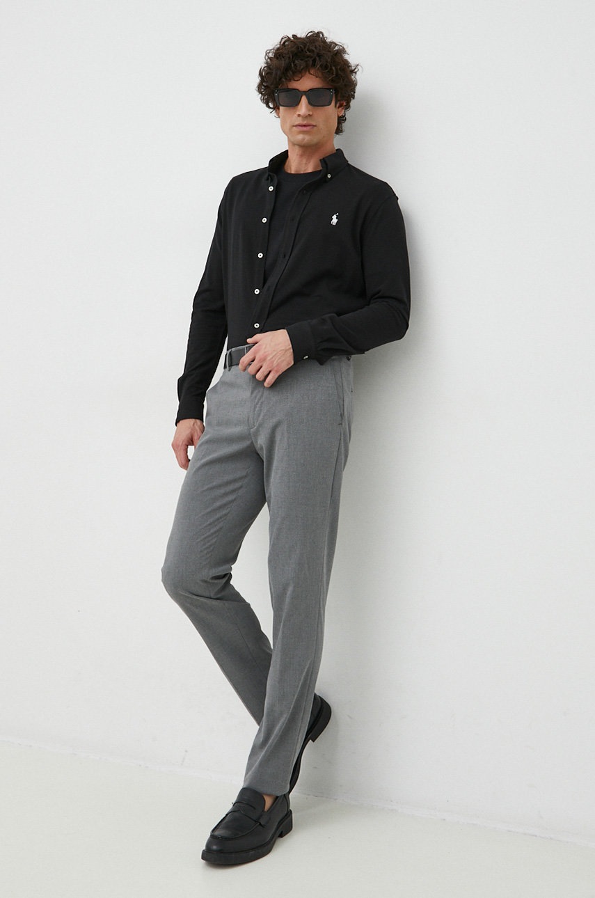 Сорочка Polo Ralph Lauren чоловіча колір чорний slim комір button-down Polo Ralph Lauren
