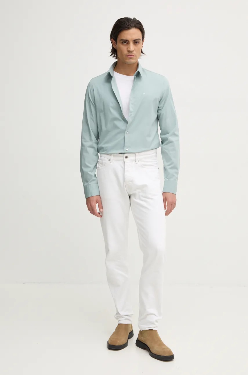 Бавовняна сорочка Tommy Hilfiger чоловіча колір білий slim з італійським коміром MW0MW37597 Tommy Hilfiger