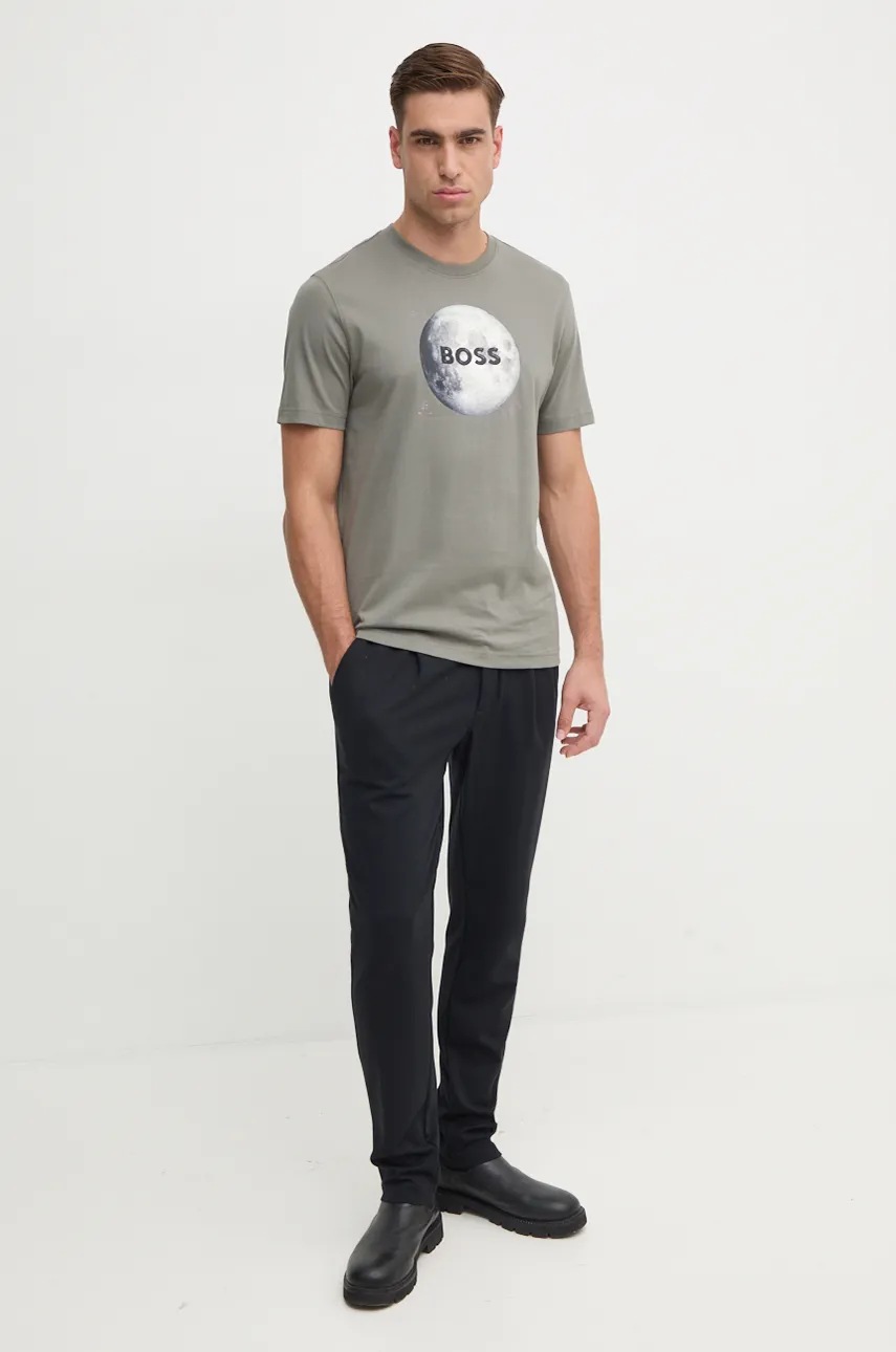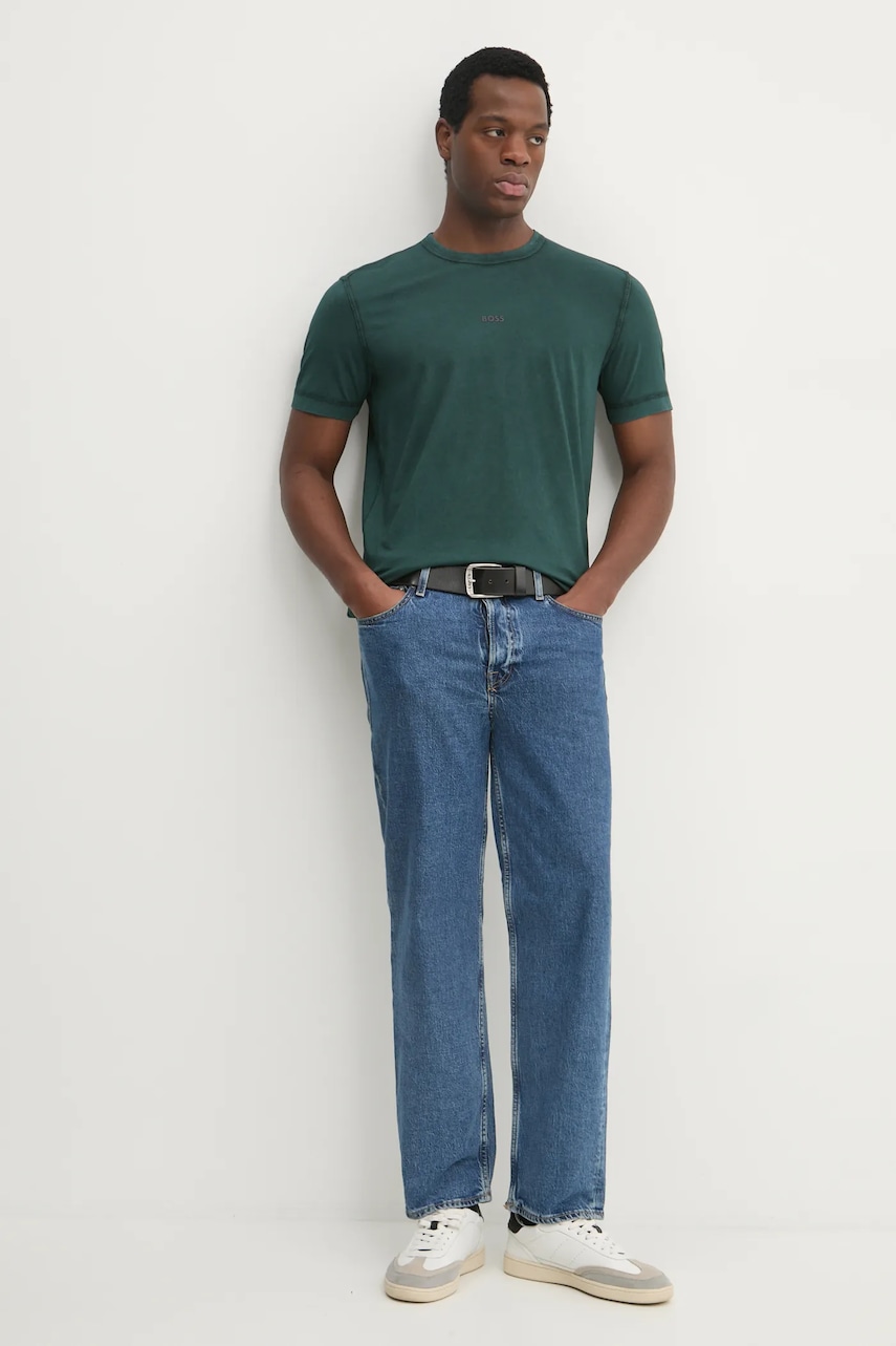 Бавовняна футболка BOSS Orange чоловічий колір зелений однотонний Boss Orange