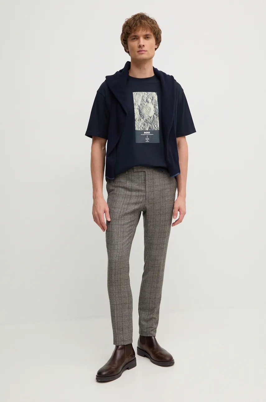 Бавовняна футболка BOSS Orange чоловіча колір бежевий з принтом 50540520 Boss Orange