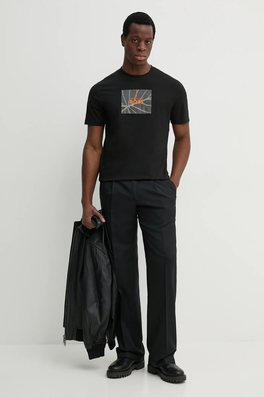 Бавовняна футболка BOSS Orange чоловіча колір чорний з принтом 50539196 Boss Orange