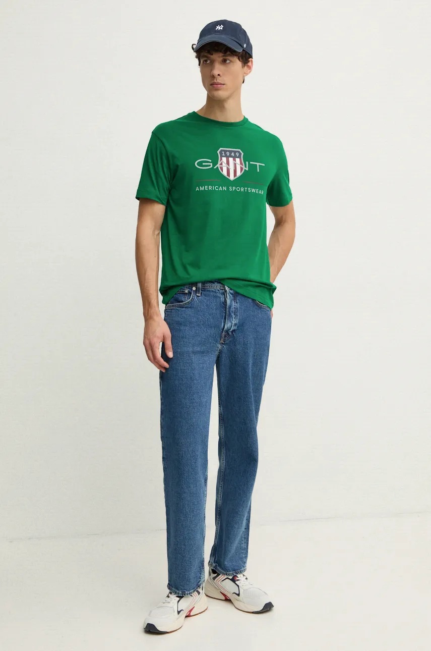 Бавовняна футболка Gant чоловіча колір зелений з принтом 2044017 Gant