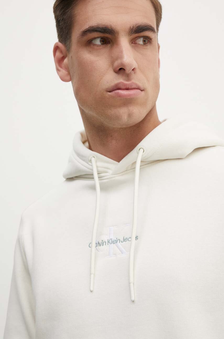 Кофта Calvin Klein Jeans чоловіча колір бежевий з капюшоном з аплікацією J30J325629