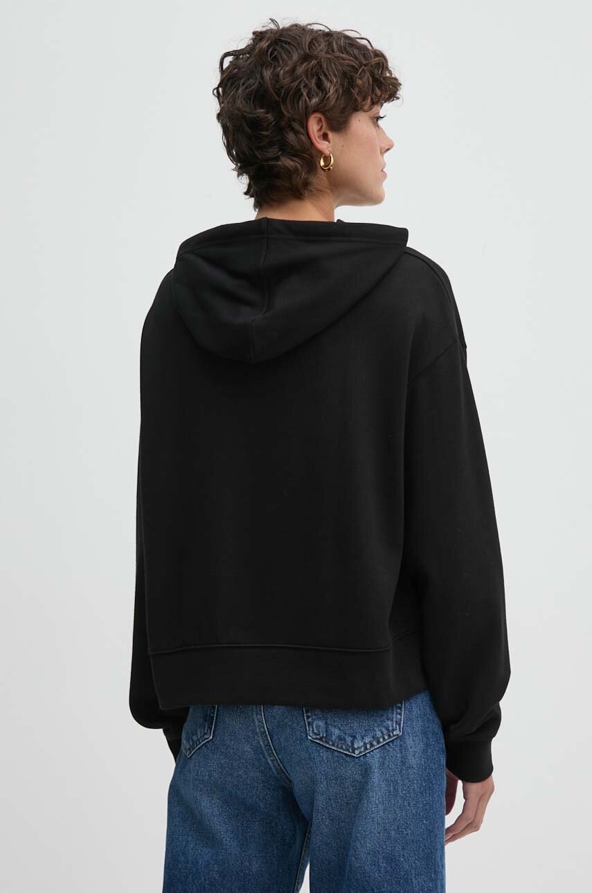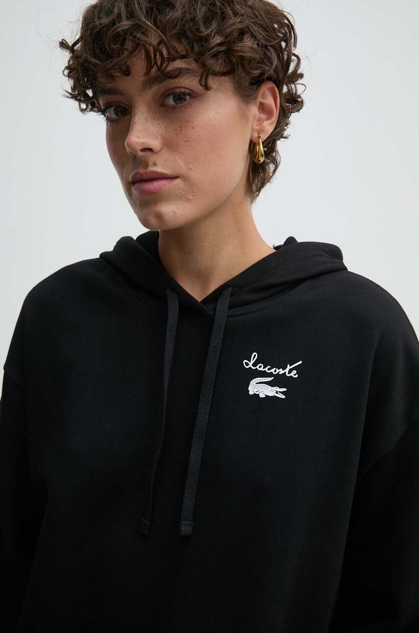 Кофта Lacoste жіноча колір чорний з капюшоном з принтом SF2649