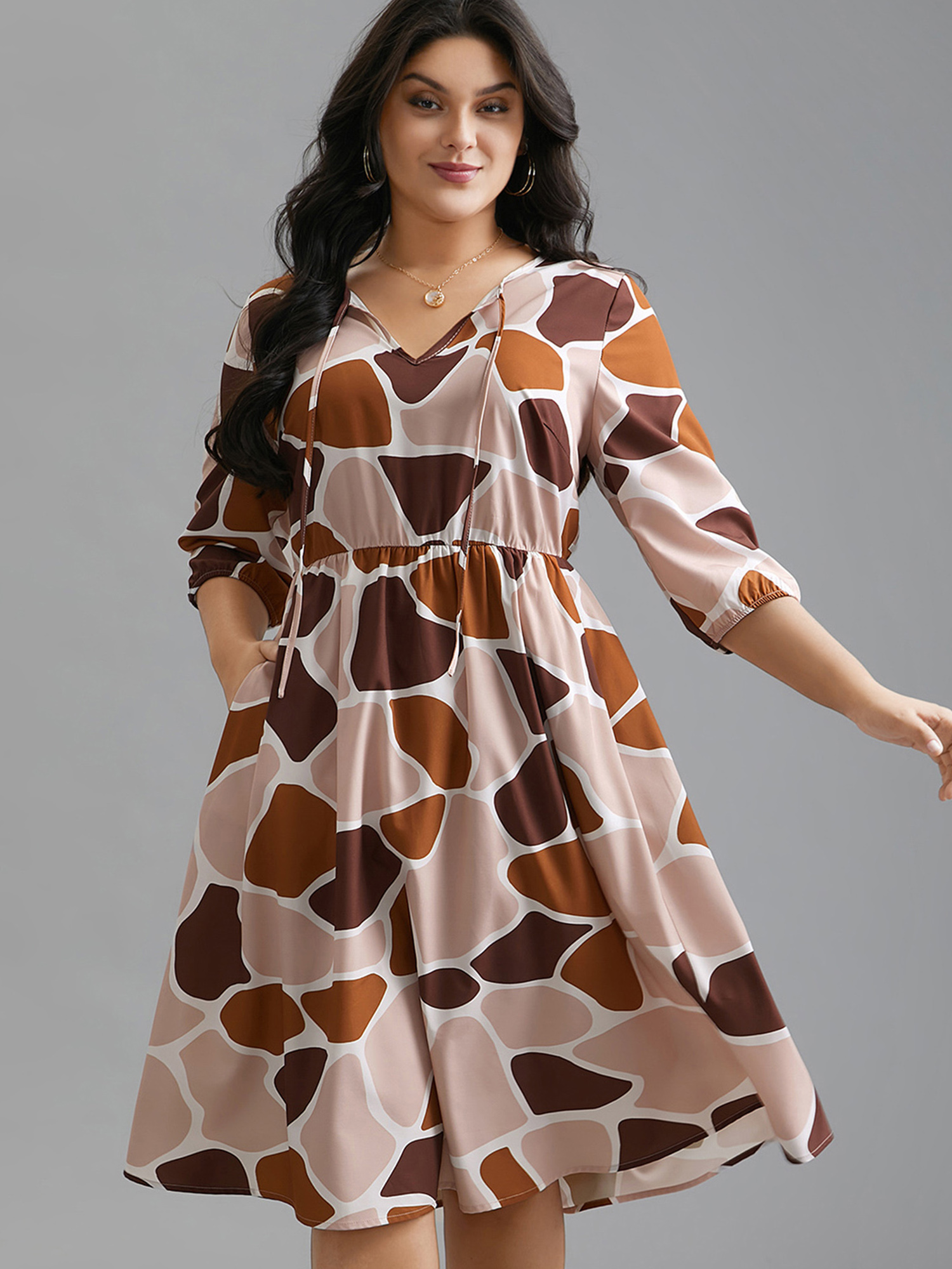 Plus Size Neck-Tie Color Block Waist Cinched Dress Multicolor Women Casual Tie knot V-neck Elbow-length sleeve Curvy BloomChic 30/6X BloomChic