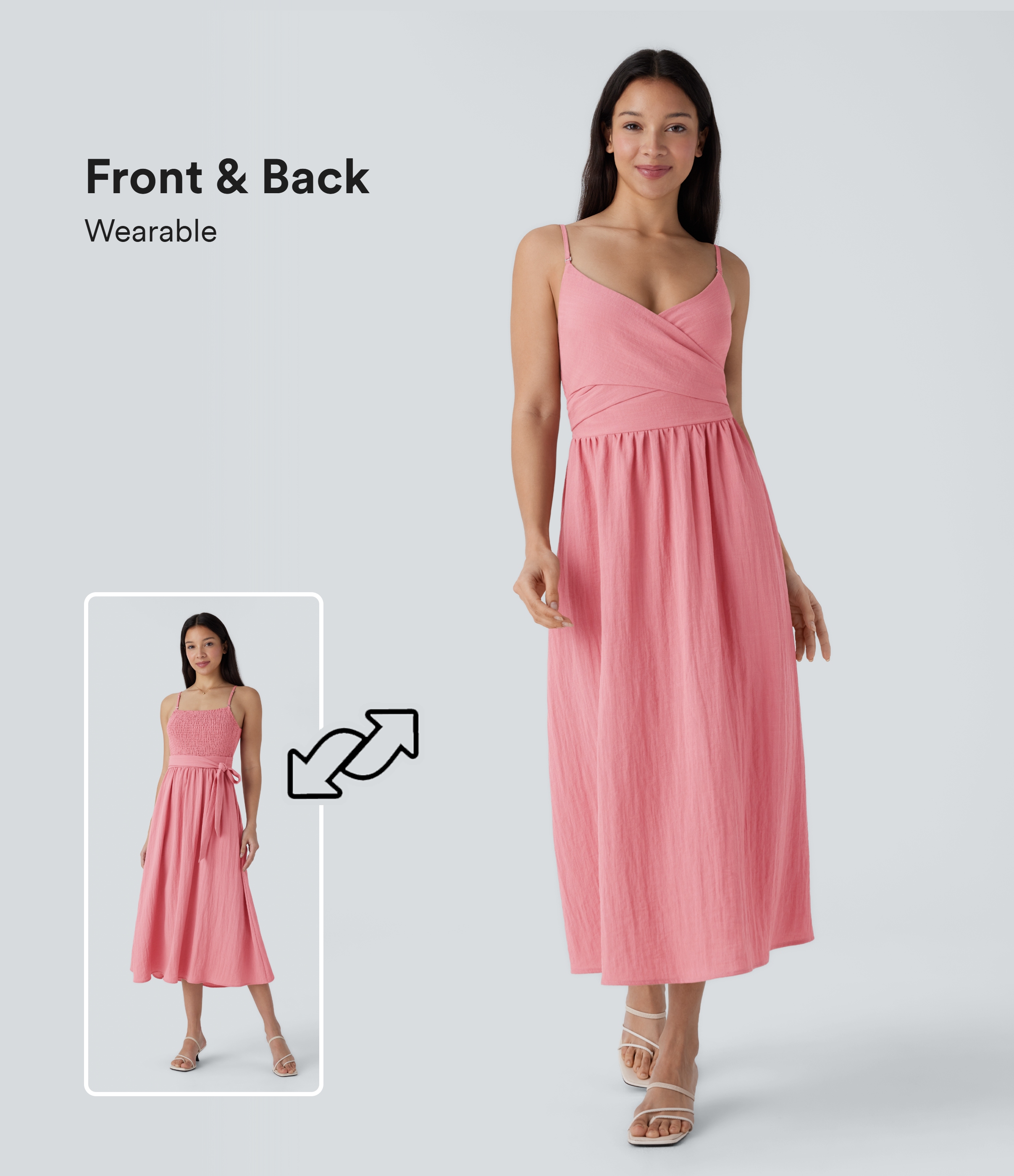 Plus Size Bib-Front V-Neck Pockets Tiered Midi Dress DarkGreen Women Elegant Tucked seam V-neck Short sleeve Curvy BloomChic 14-16/1X BloomChic