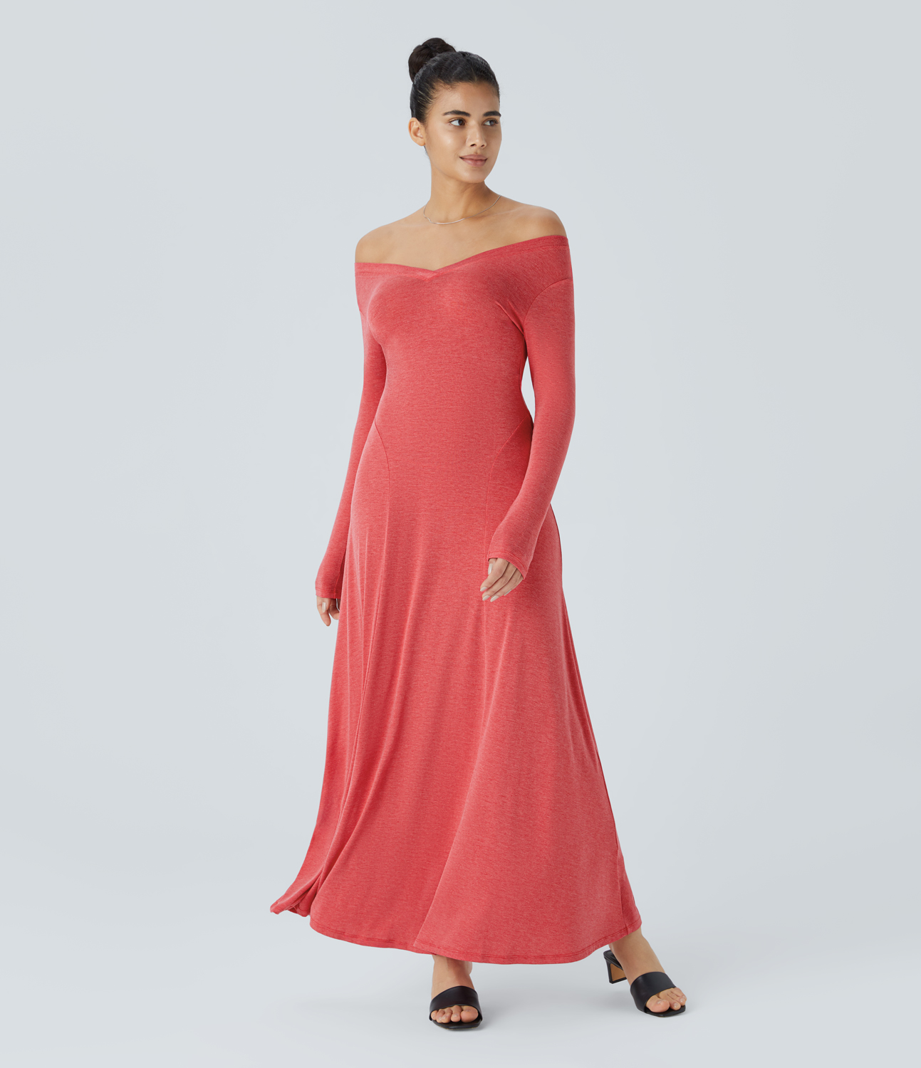 Halara V Neck Long Sleeve Draped Maxi Casual Dress Casual Dress - Poinsettia Floral Yarn - S slip dress beach dress ruched dress halter dress Halara