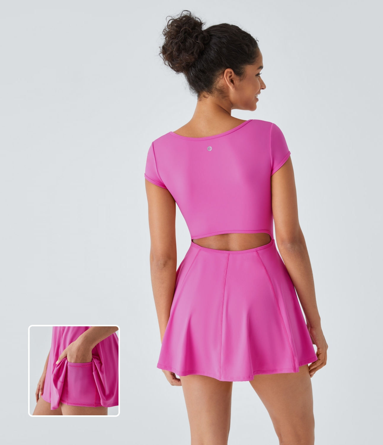Halara Sleeveless Cut Out Tie Back 2-Piece Pocket Mini Yoga Activity Dress Workout Dress - Orchid Bouquet - L Halara