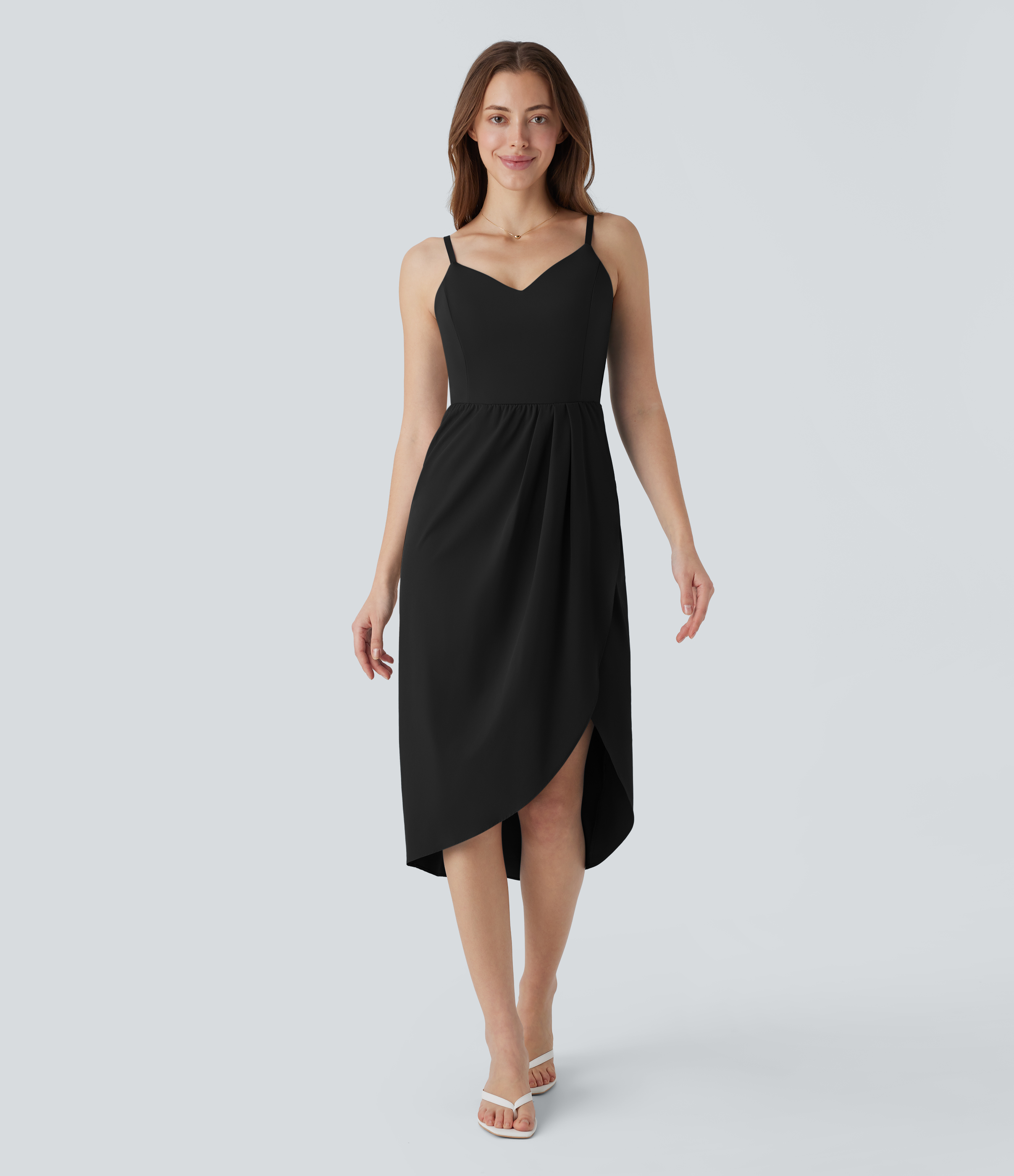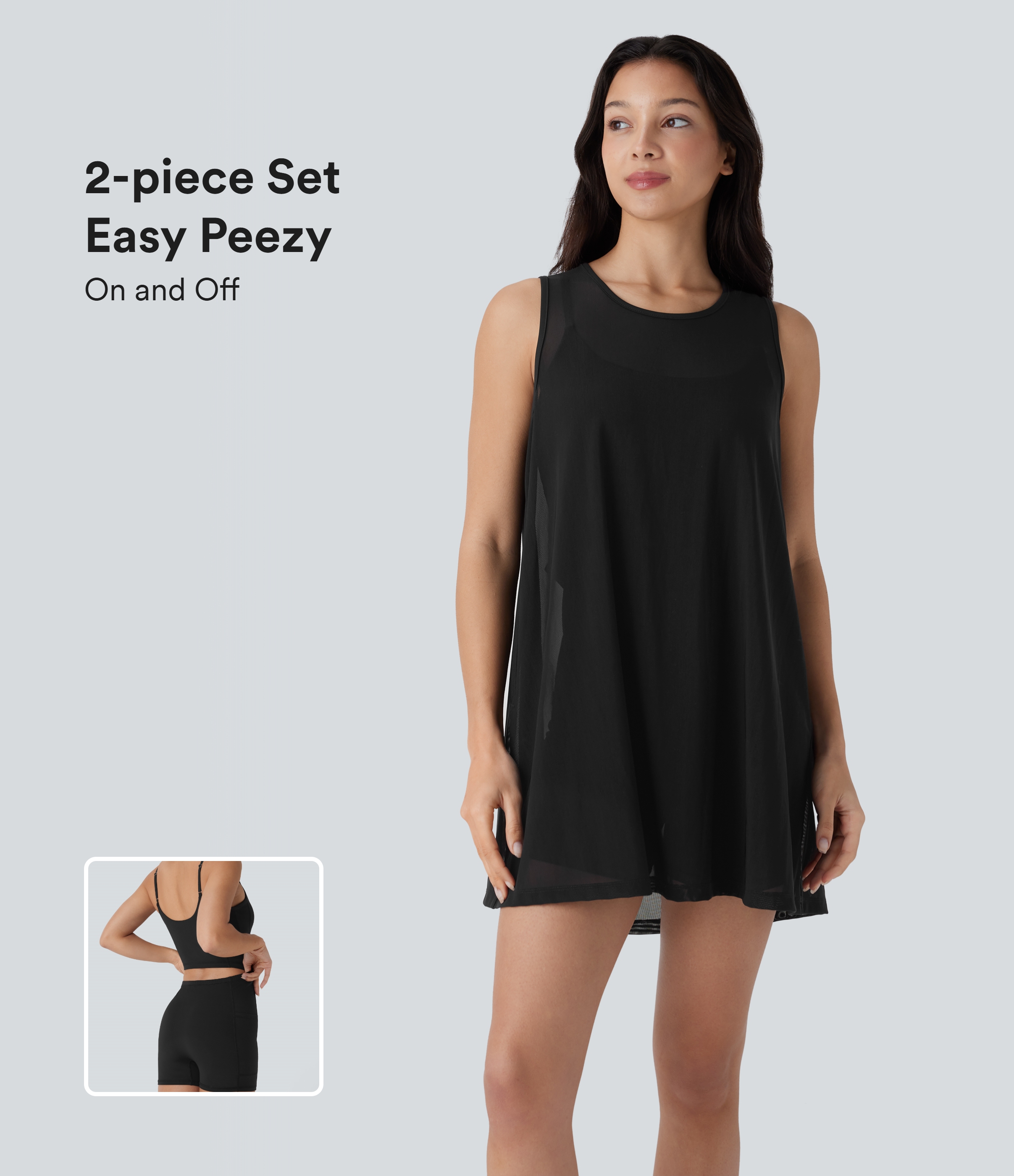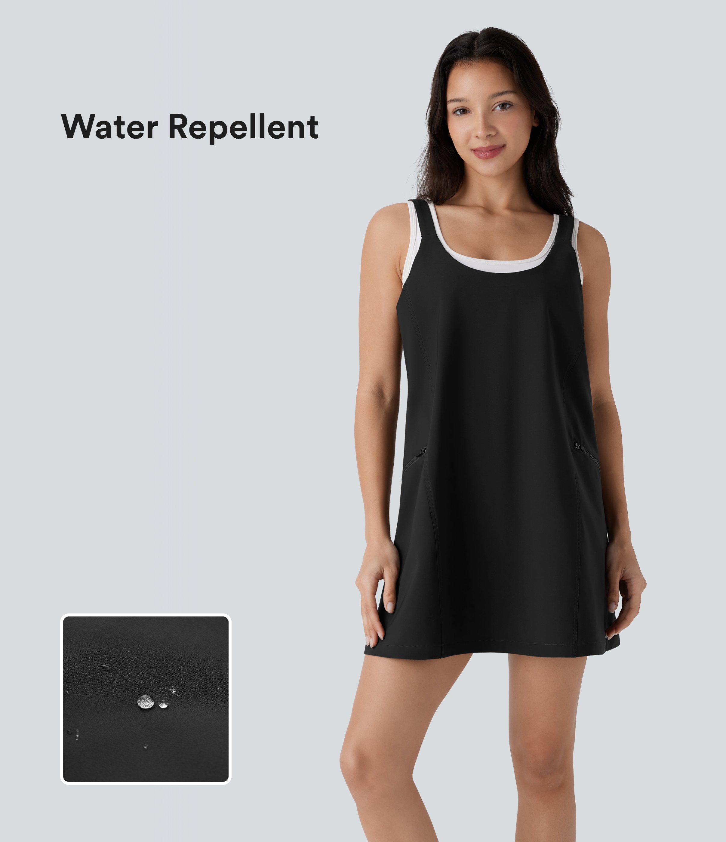 Halara V Neck Backless 2-in-1 Side Pocket Flowy Mini Tennis Active Dress Workout Dress - Light Grey Blue - S Halara