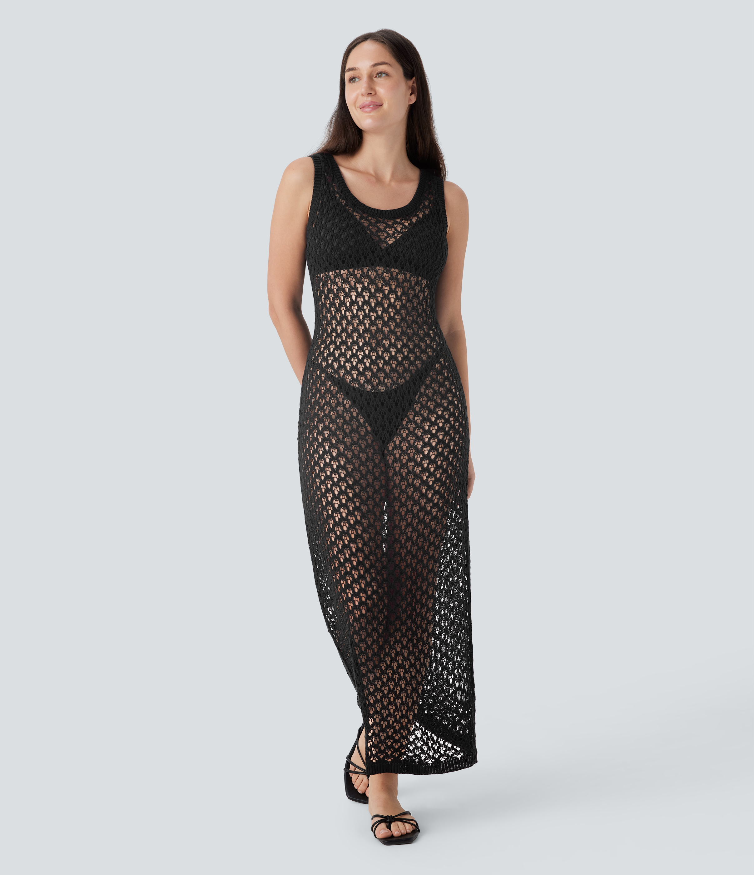 Halara Round Neck Side Pocket Plicated Midi Casual Dress Casual Dress - Light Green Floral Yarn - XS slip dress beach dress ruched dress Halara