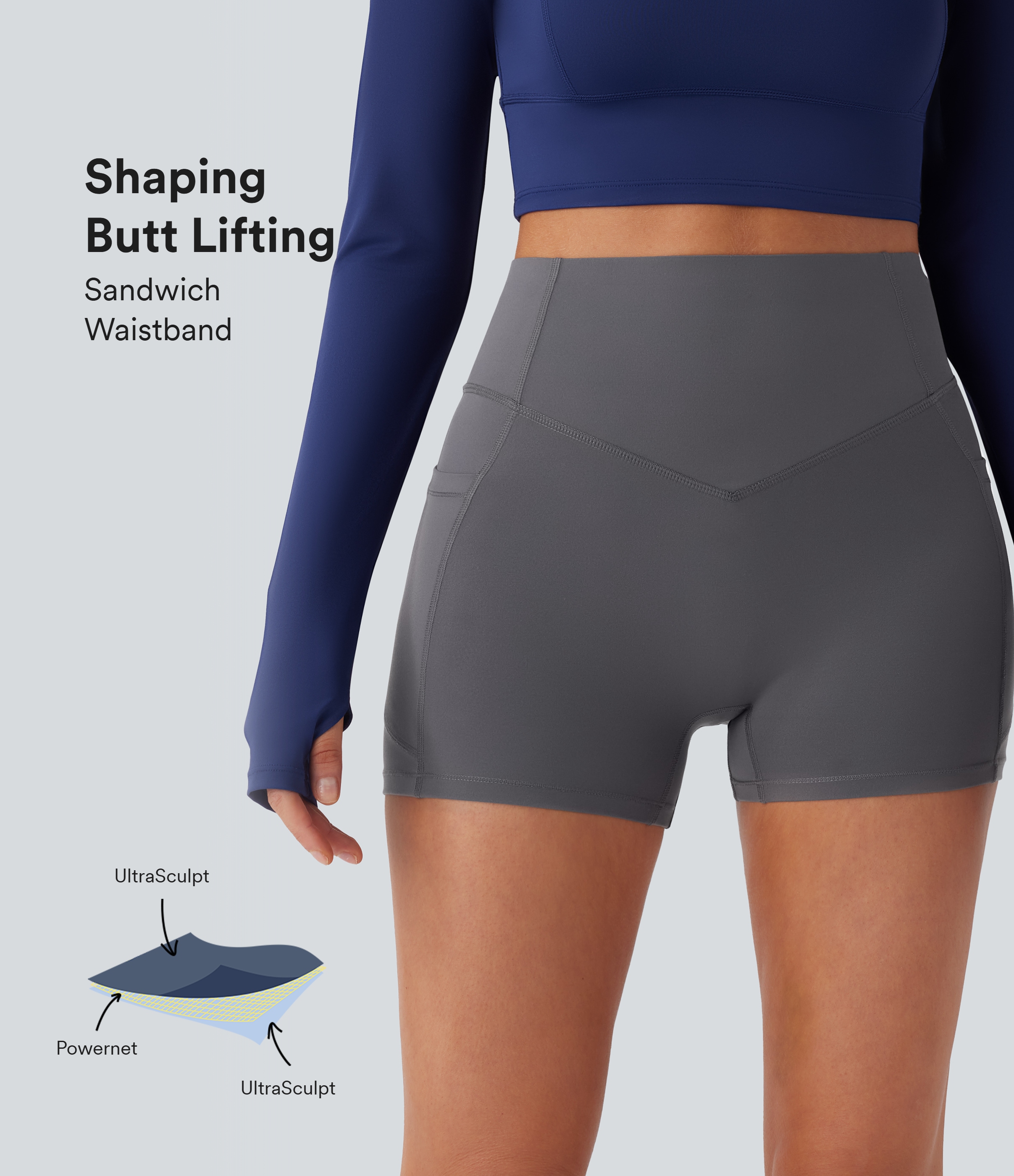 Halara Back Pocket Plus Side Hidden Pocket 2-in-1 Gym Plus Size Shorts 3.5`` - Blue Spruce - 1X Halara