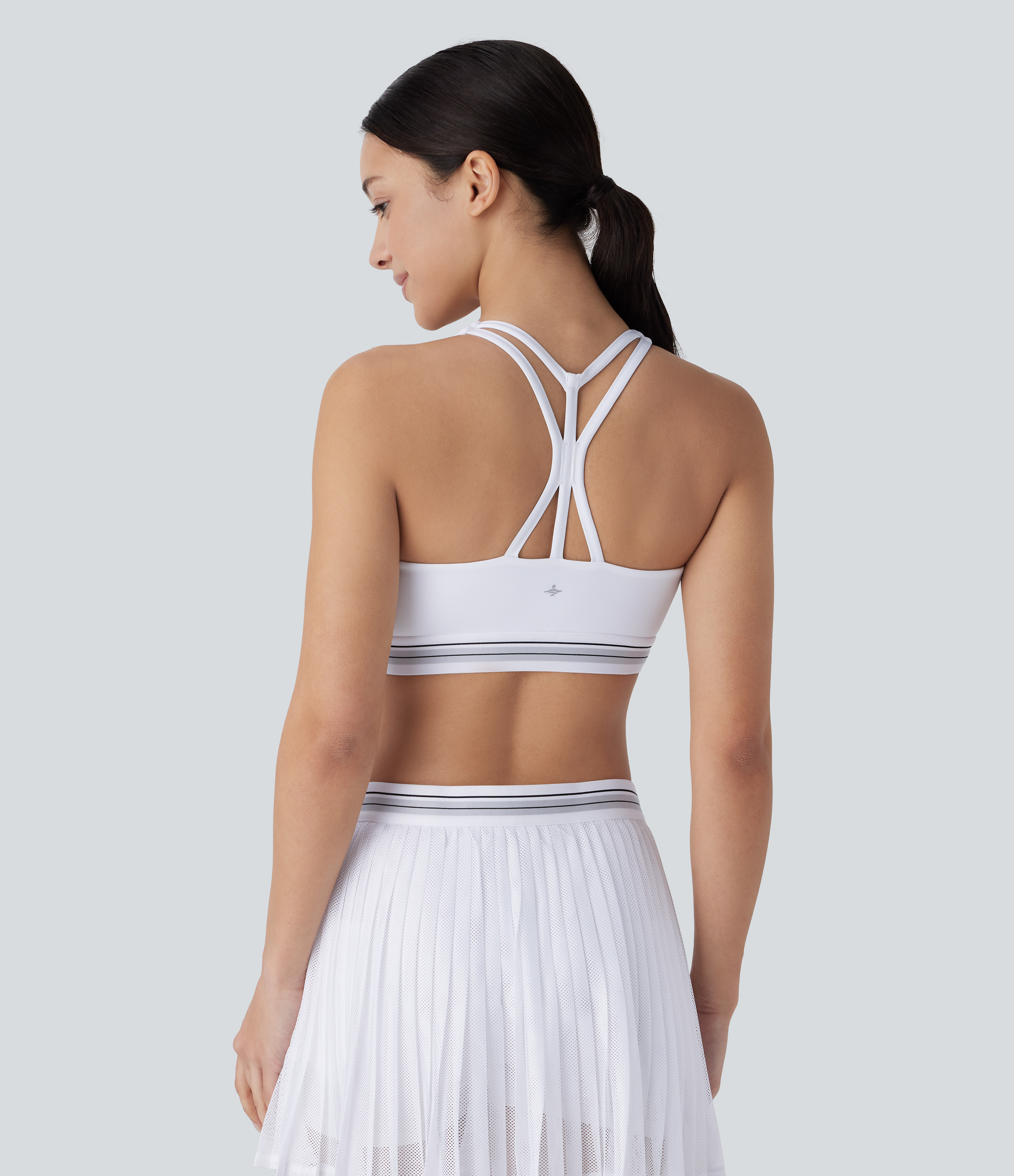 Halara Low Support U Neck Backless Stripe Cool Touch Yoga Sports Bra - Wine Red and Black Stripe - M push up bra strapless bra backless bra Halara