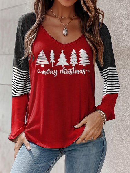 Women`s Striped Short Sleeve Tee T-shirt V Neck Printing Casual Summer Graphic Tee Top T-Shirts JustFashionNow