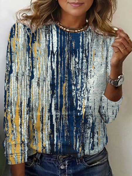 Women`s Long Sleeve Tee T-shirt Spring/Fall Striped Printing Crew Neck Casual Top T-Shirts JustFashionNow