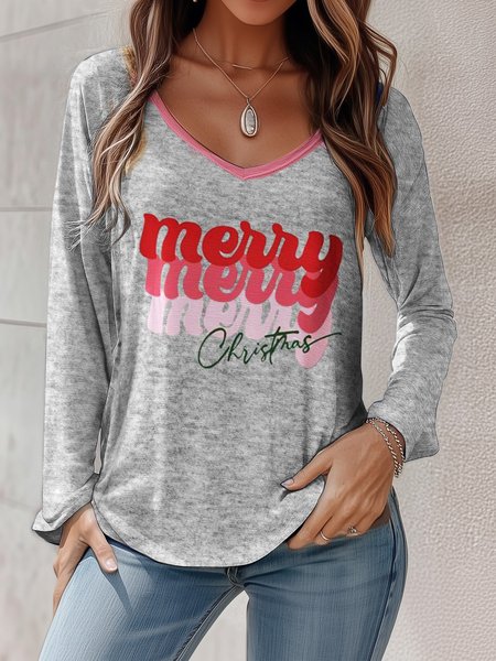 Women`s Letter Short Sleeve Tee T-shirt V Neck Casual Summer Top T-Shirts JustFashionNow