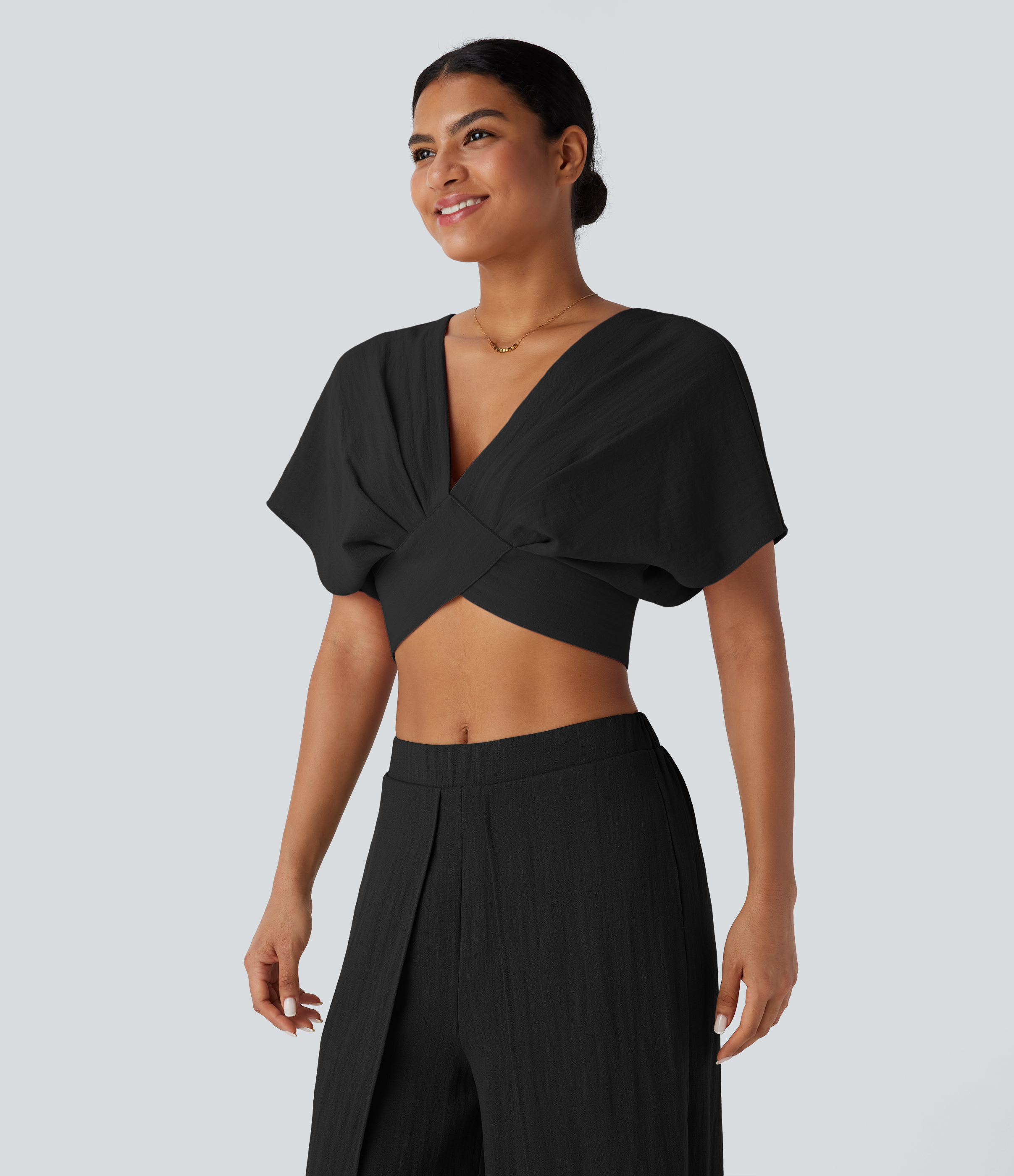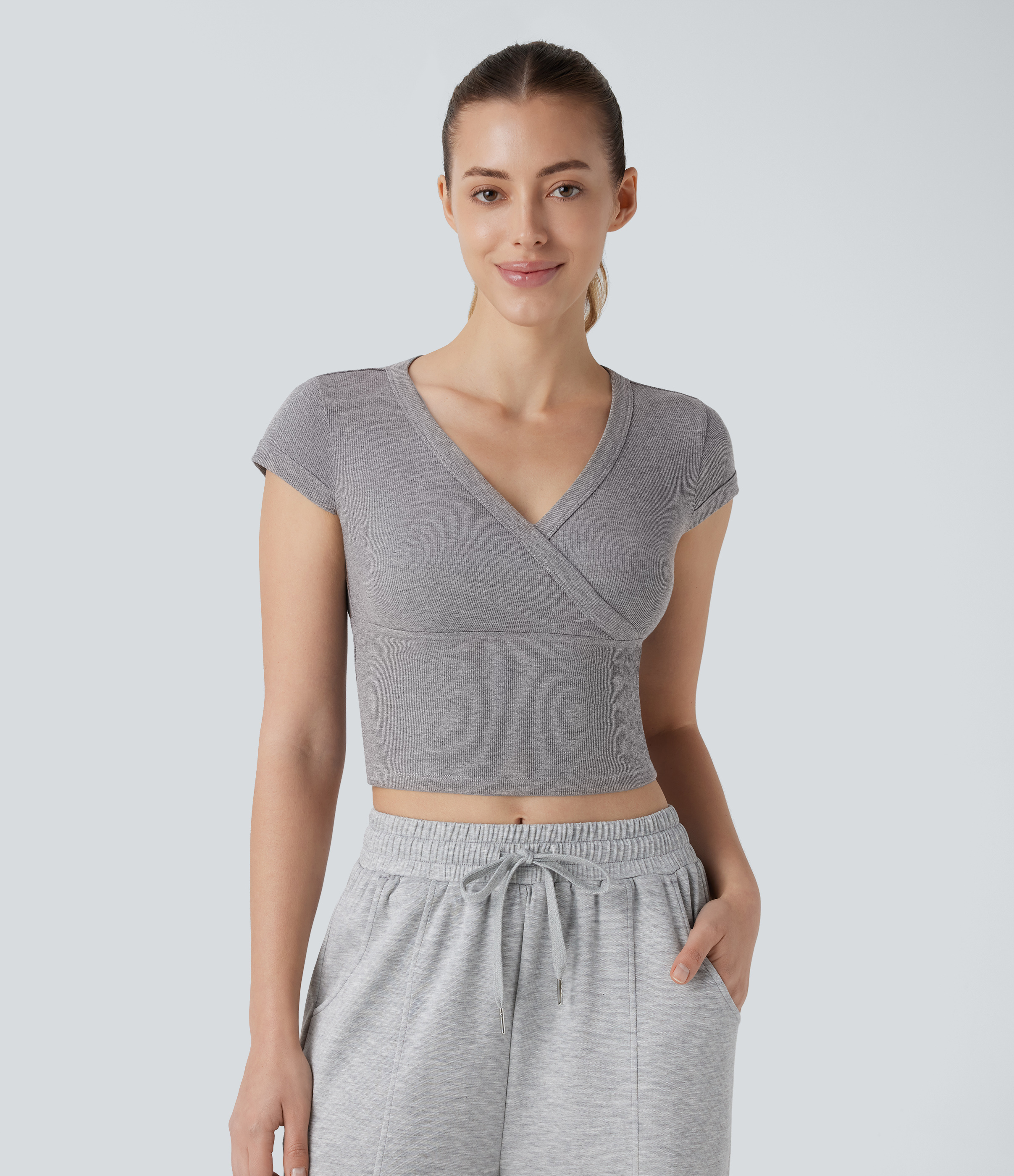 Halara Twisted V Neck Long Sleeve Ruched Skinny Work Top Tank Top - Red Violet Floral Yarn - S golf tops halter top tunic tops Halara