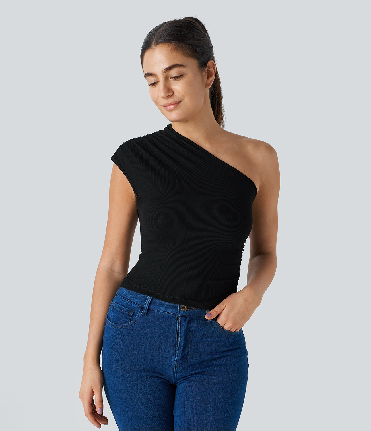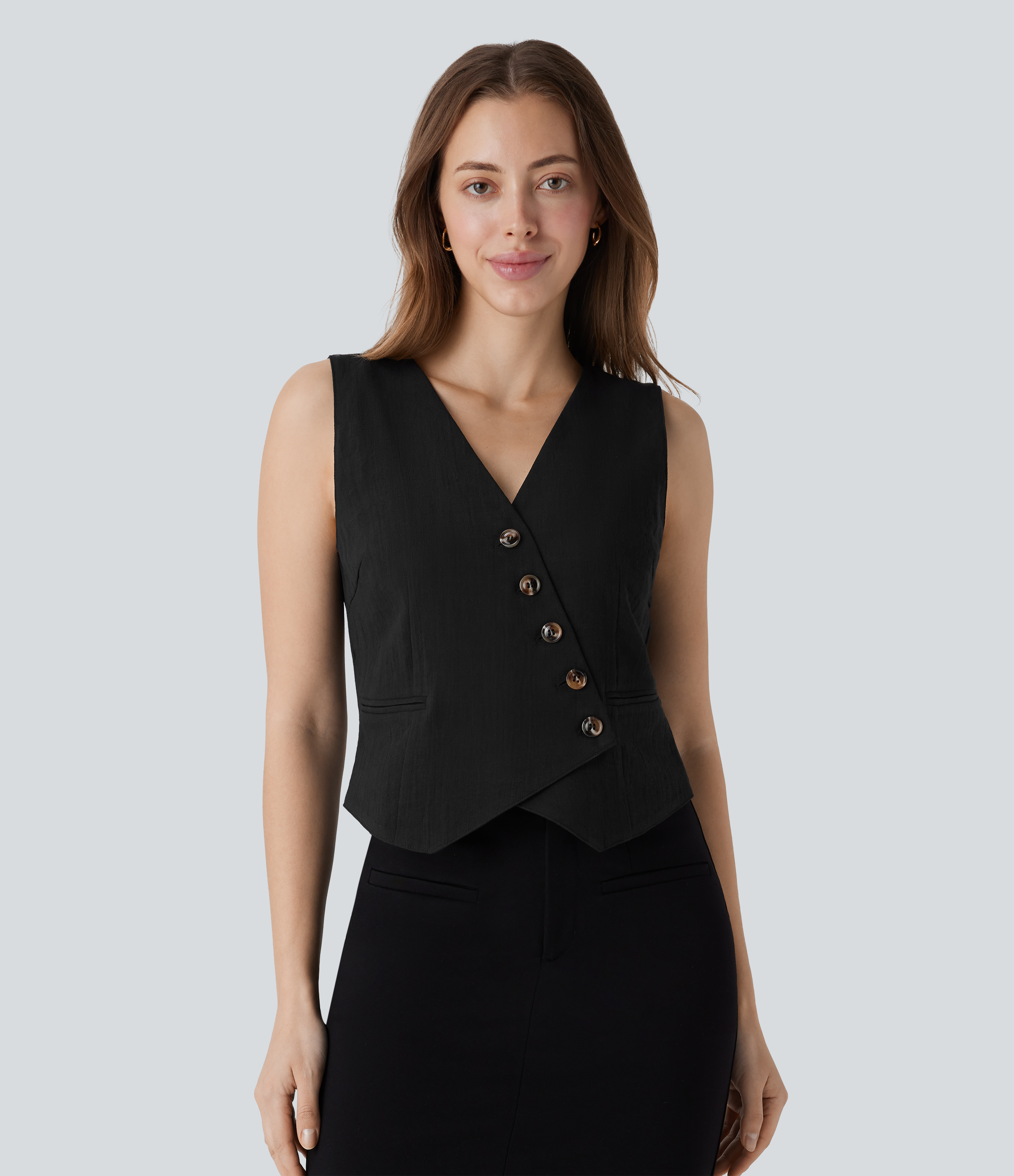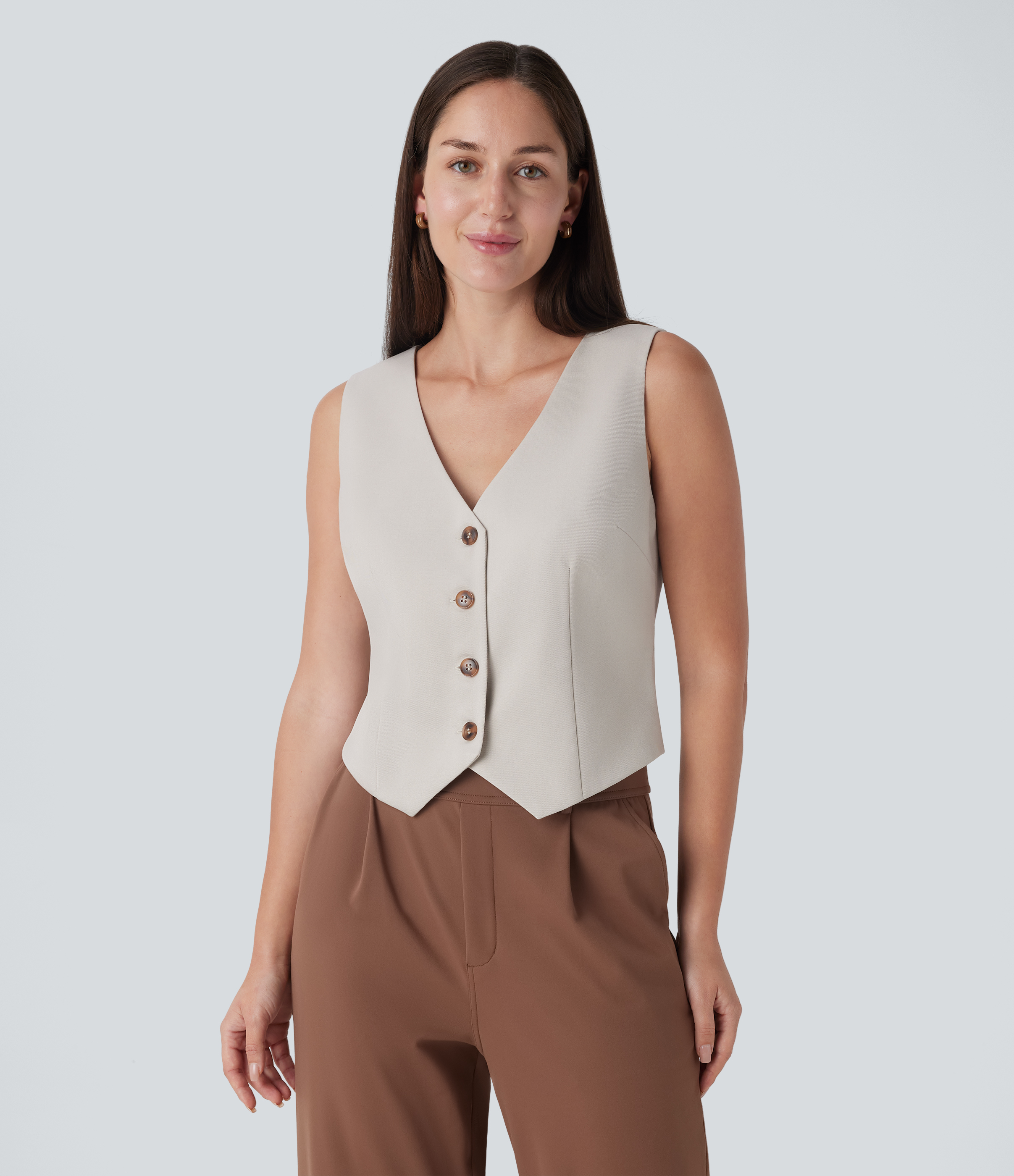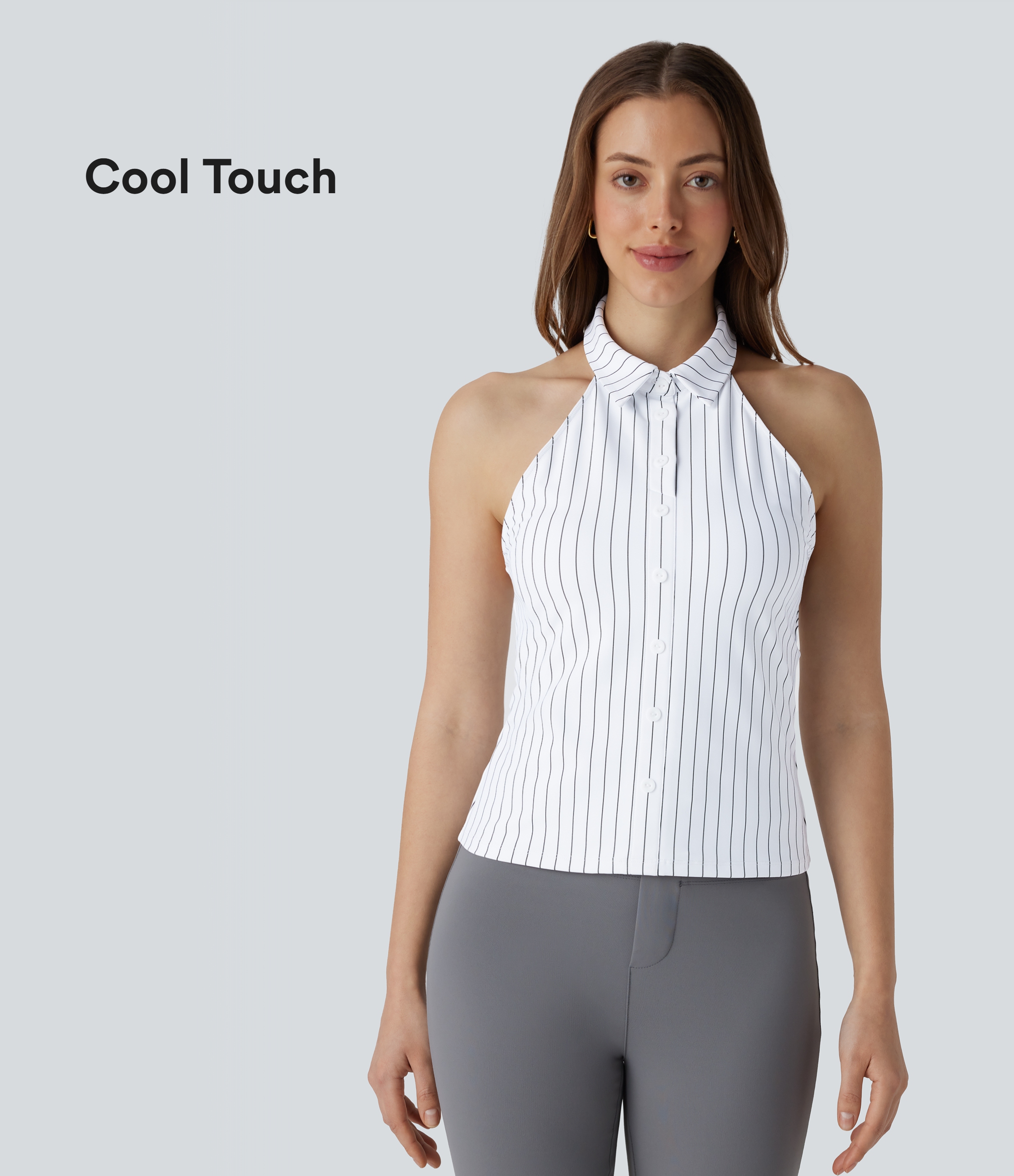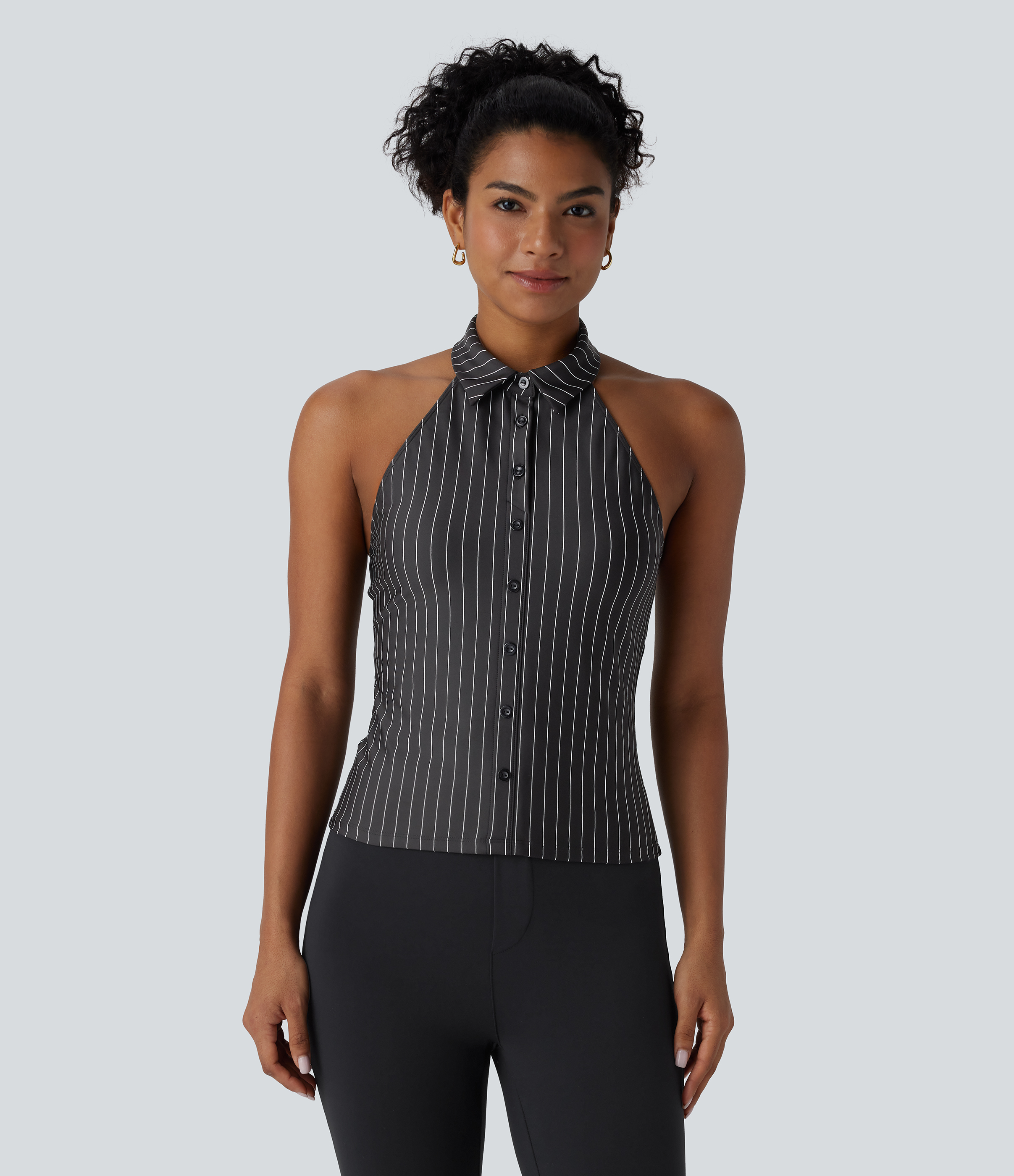 Halara Halter Backless Stripe Cool Touch Work Top Tank Top - Black White Oxford Pinstripe - S golf tops halter top tunic tops sleeveless tops Halara
