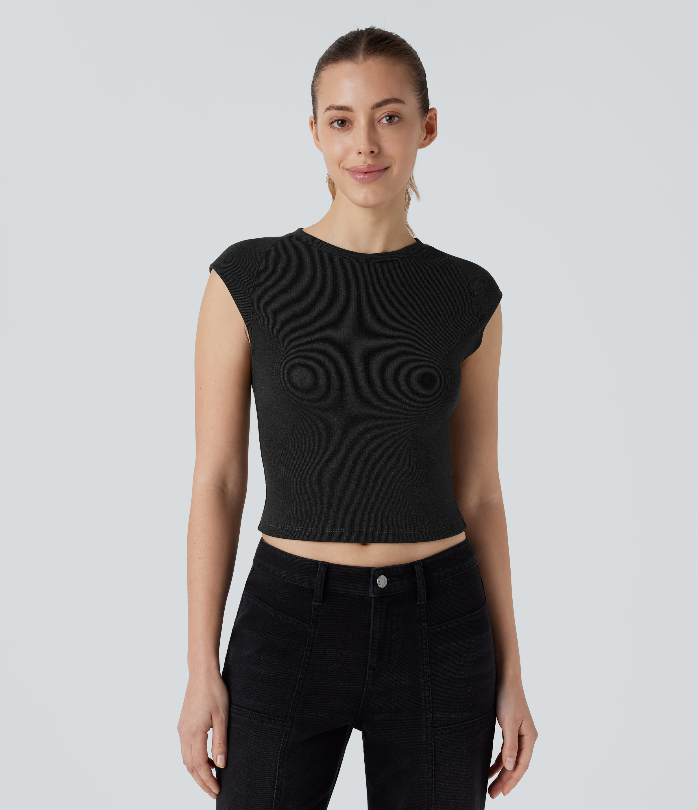 Halara Dropped Shoulder Roll Up Sleeve Oversize Casual Top Tank Top - Deep Tea Brown Floral Yarn - XS golf tops halter top tunic tops Halara