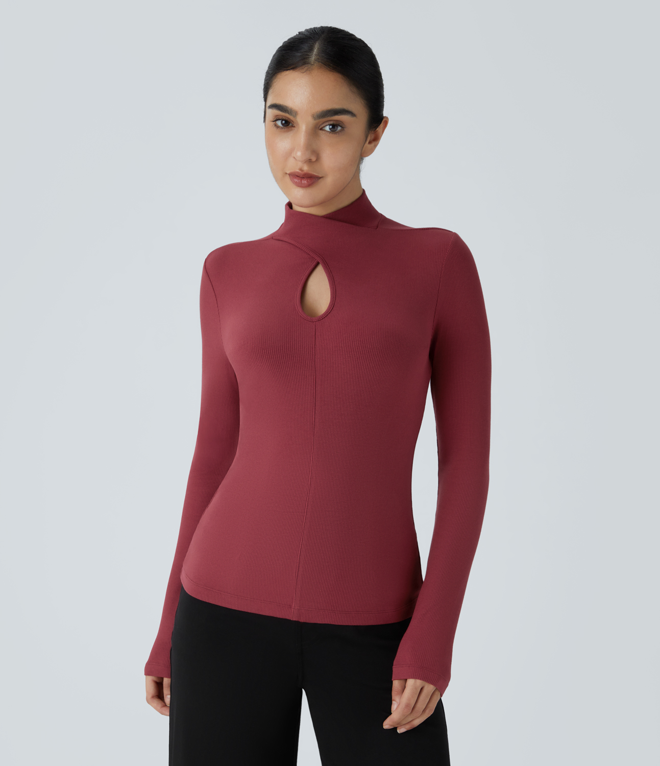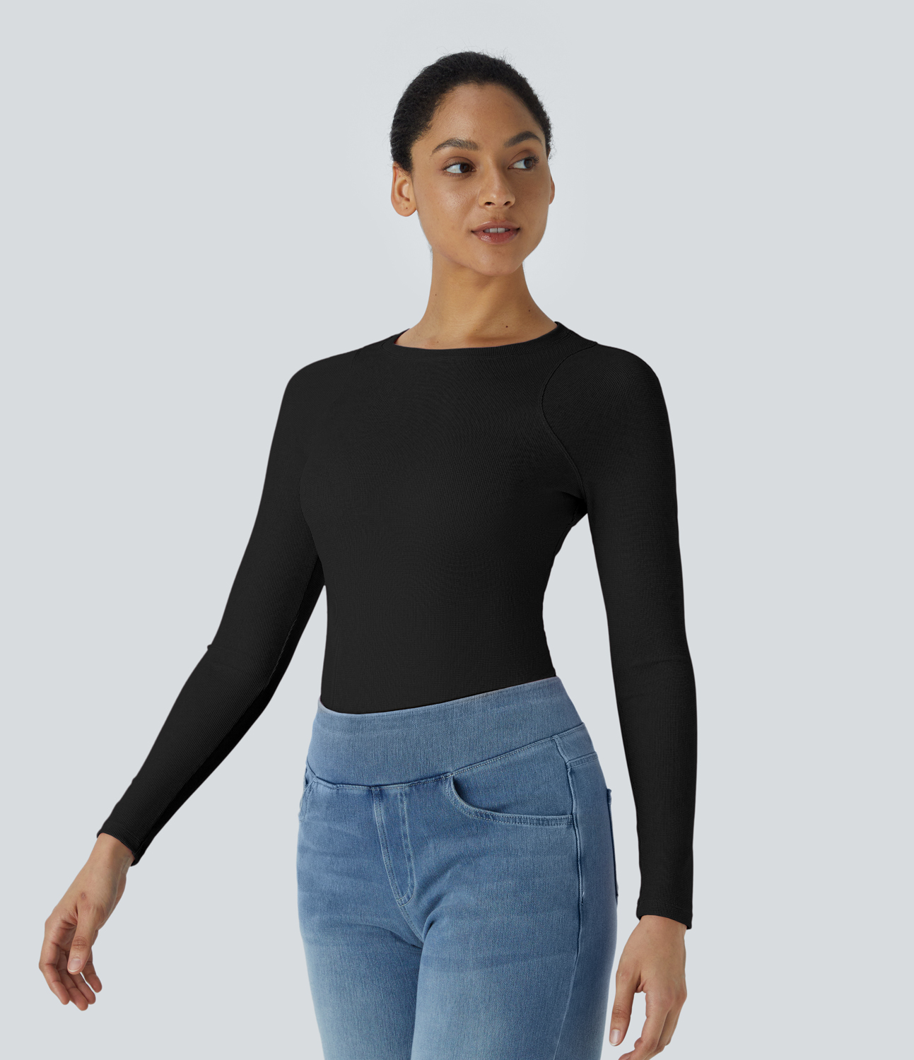 Halara Ribbed Knit Square Neck Ruched Curved Hem 2-in-1 Skinny Casual Baby Tee Tank Top - Ocean Eyes - Light Blue - S golf tops halter top Halara
