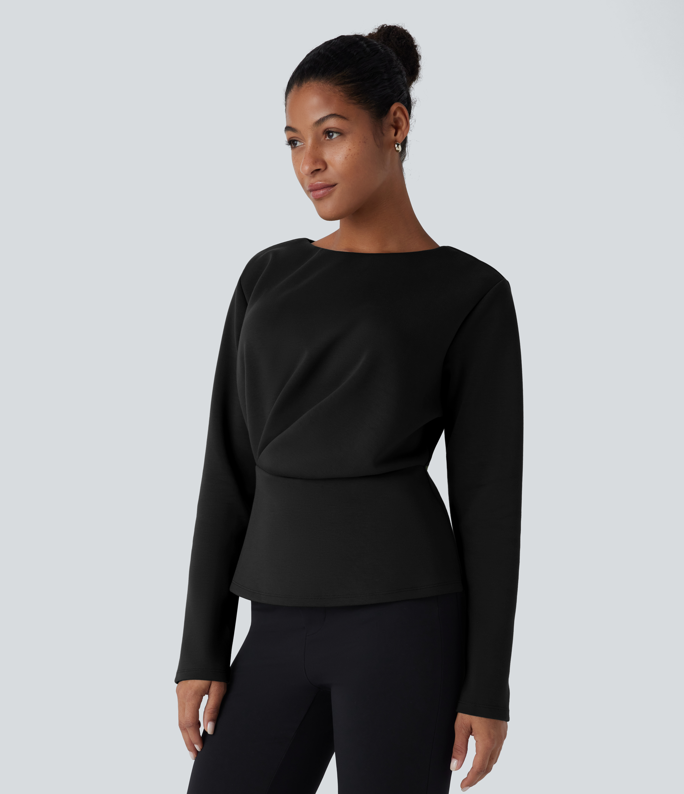 Halara Twisted V Neck Long Sleeve Ruched Skinny Work Top Tank Top - Red Violet Floral Yarn - L golf tops halter top tunic tops Halara