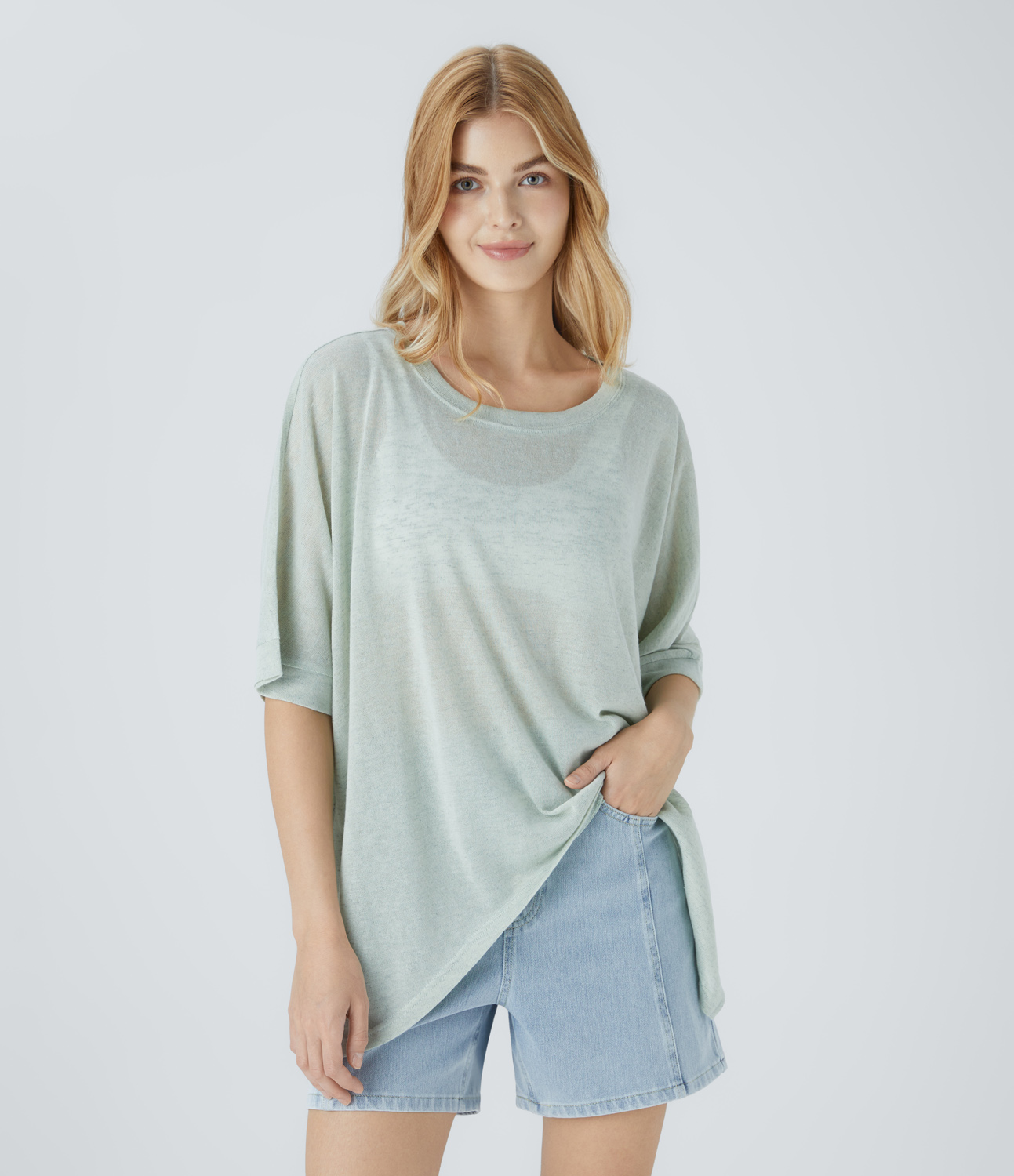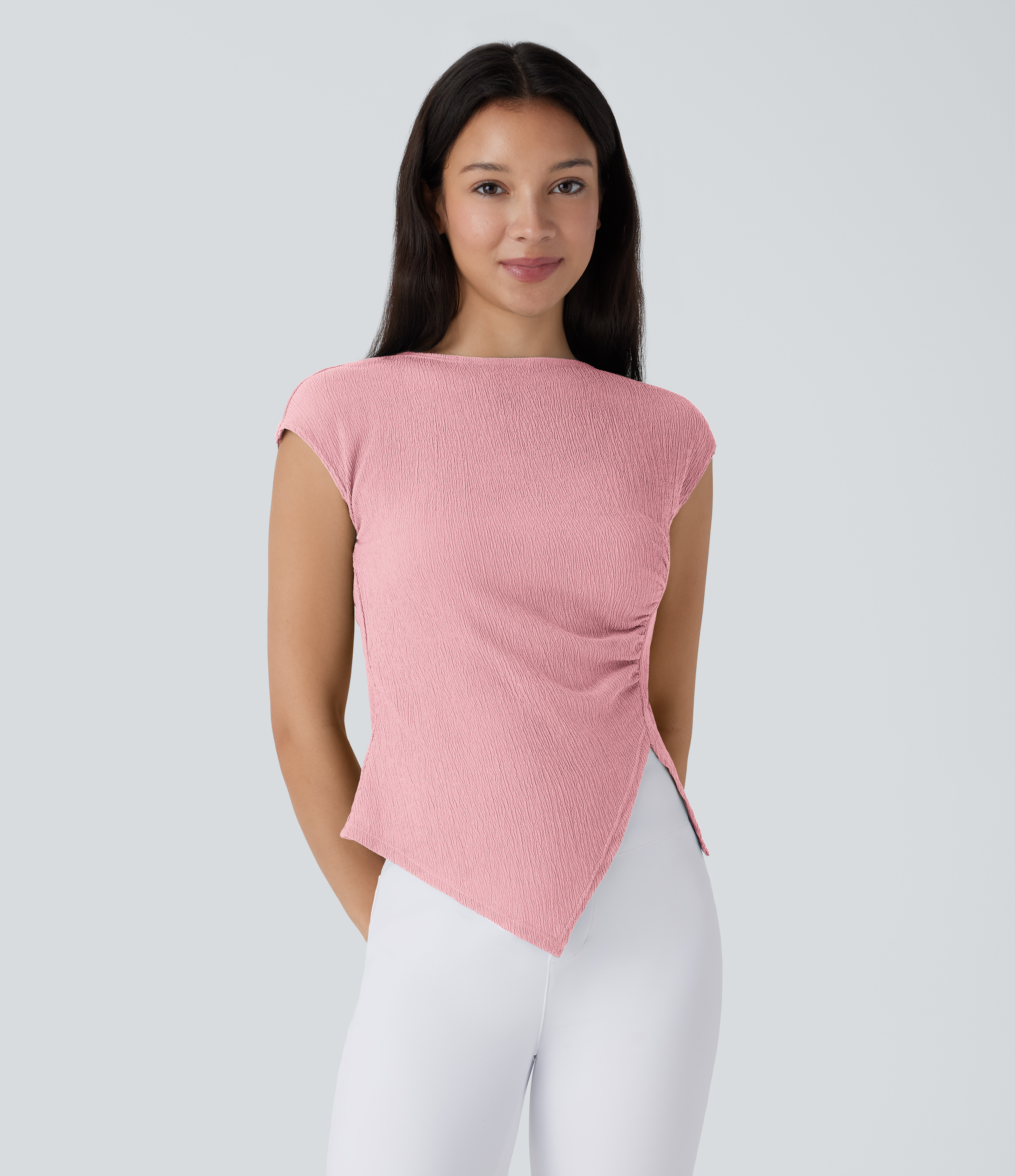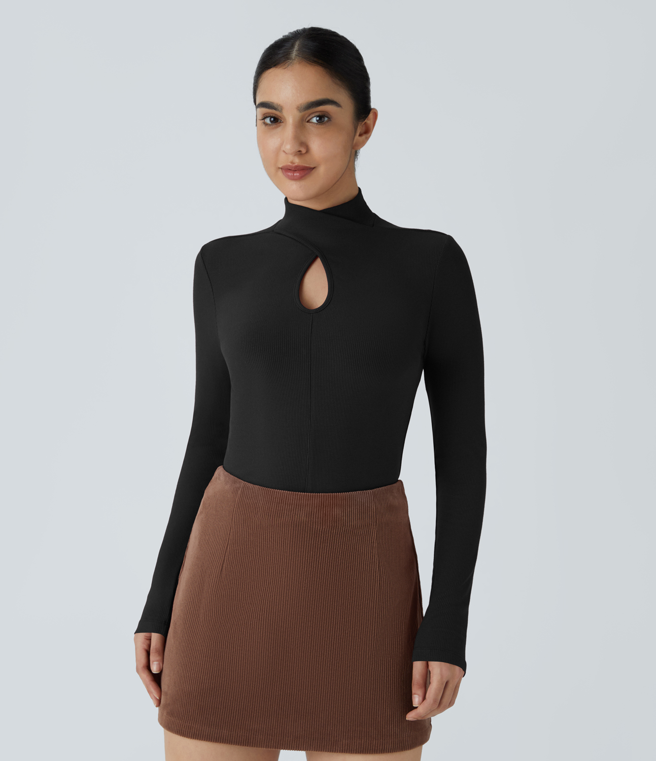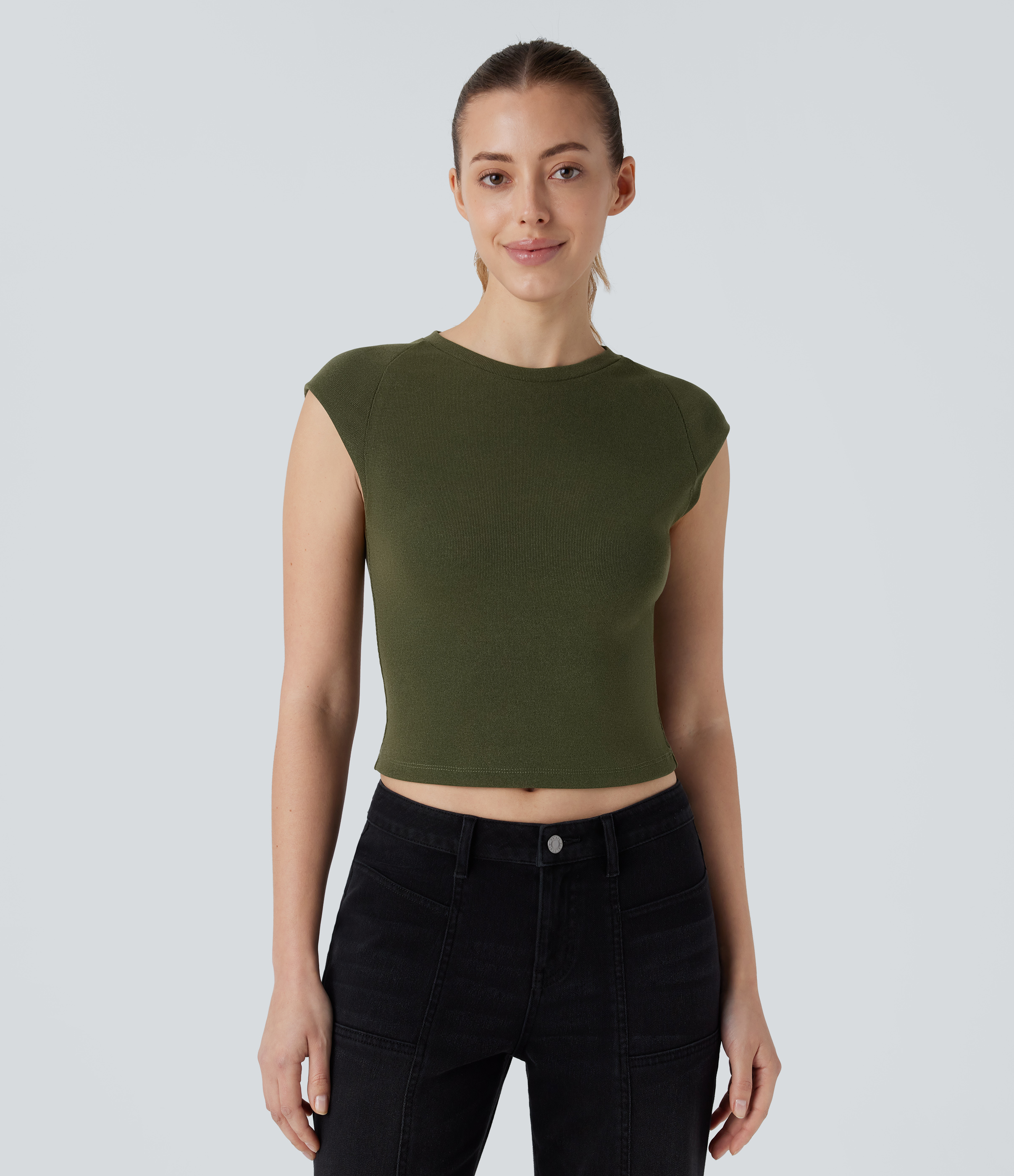 Halara Ribbed Knit Square Neck Ruched Curved Hem 2-in-1 Skinny Casual Baby Tee Tank Top - Ocean Eyes - Light Blue - M golf tops halter top Halara