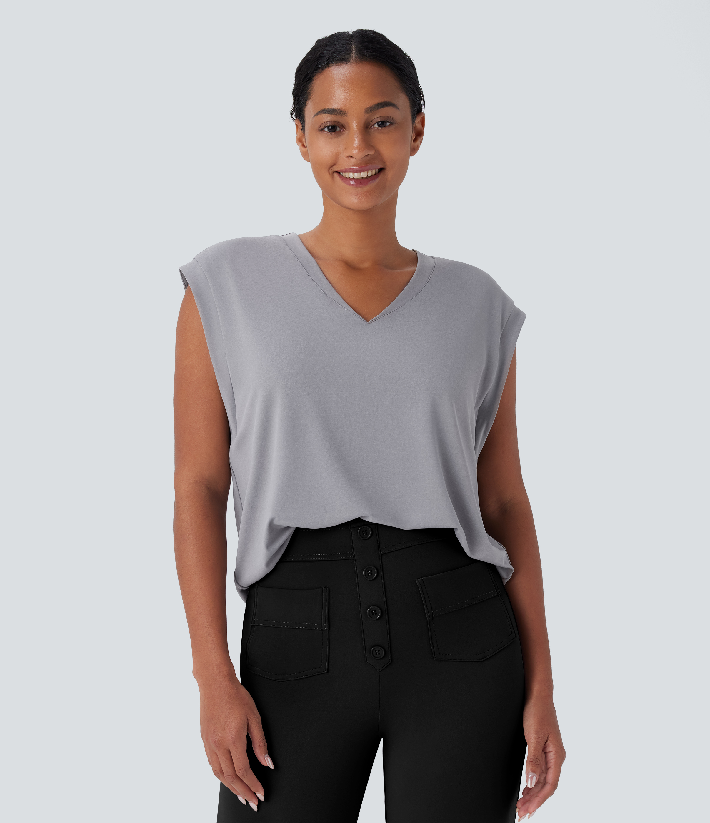 Halara Sheer Mesh V Neck Flounce Sleeve Ruffle Tie Front Casual Top Tank Top - Sandalwood Grape Purple - M golf tops halter top tunic tops Halara